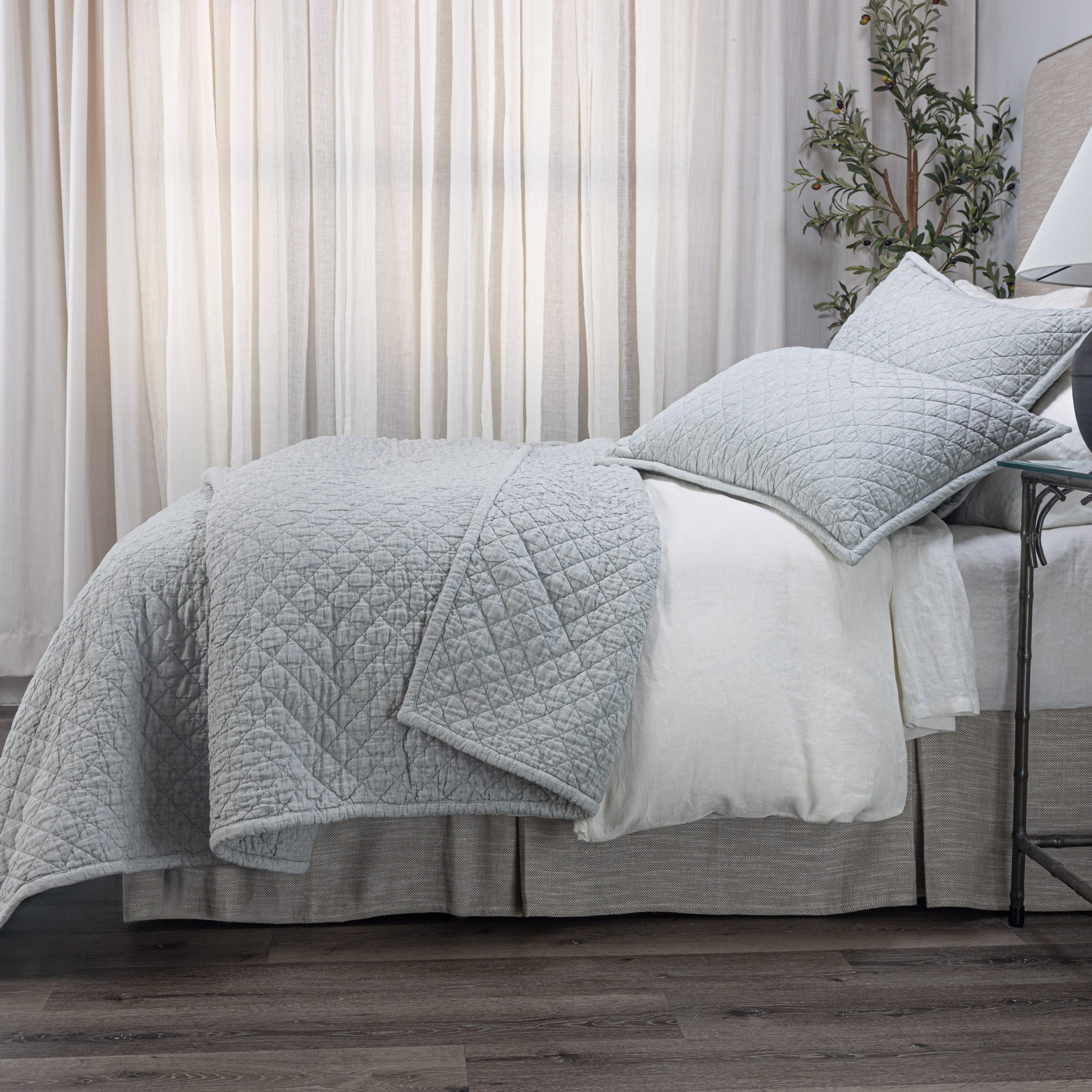 Elevate your bedding with the Dale Linen Quilt, crafted from 100% fine Belgian linen on both the front and back for luxurious softness and durability. Machine quilted in a timeless diamond pattern and finished with a padded piped edge, this quilt exudes elegance and refinement. Available in 7 sophisticated colors as part of the Amity Assentials program, the Dale Linen Quilt offers endless style possibilities for any bedroom decor.