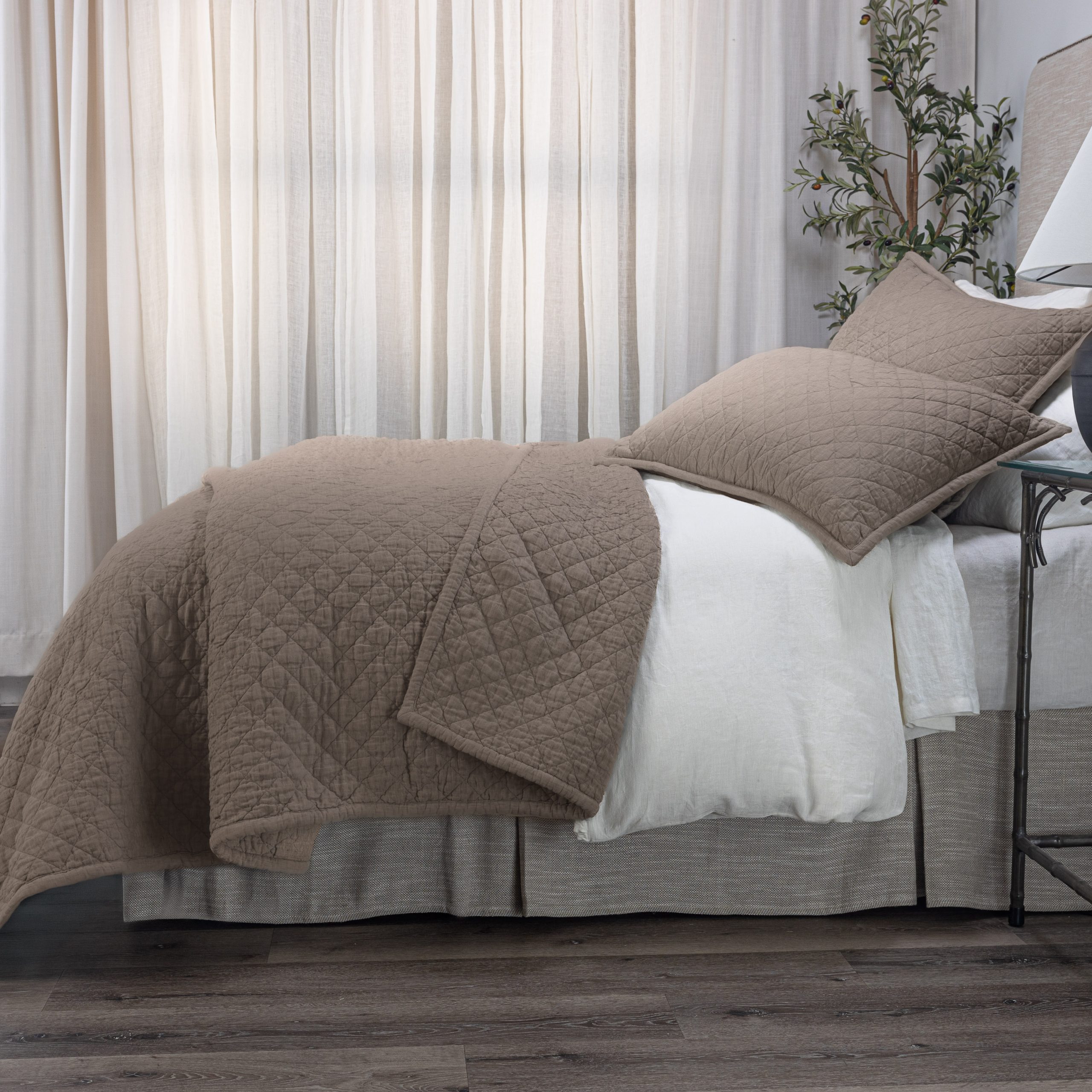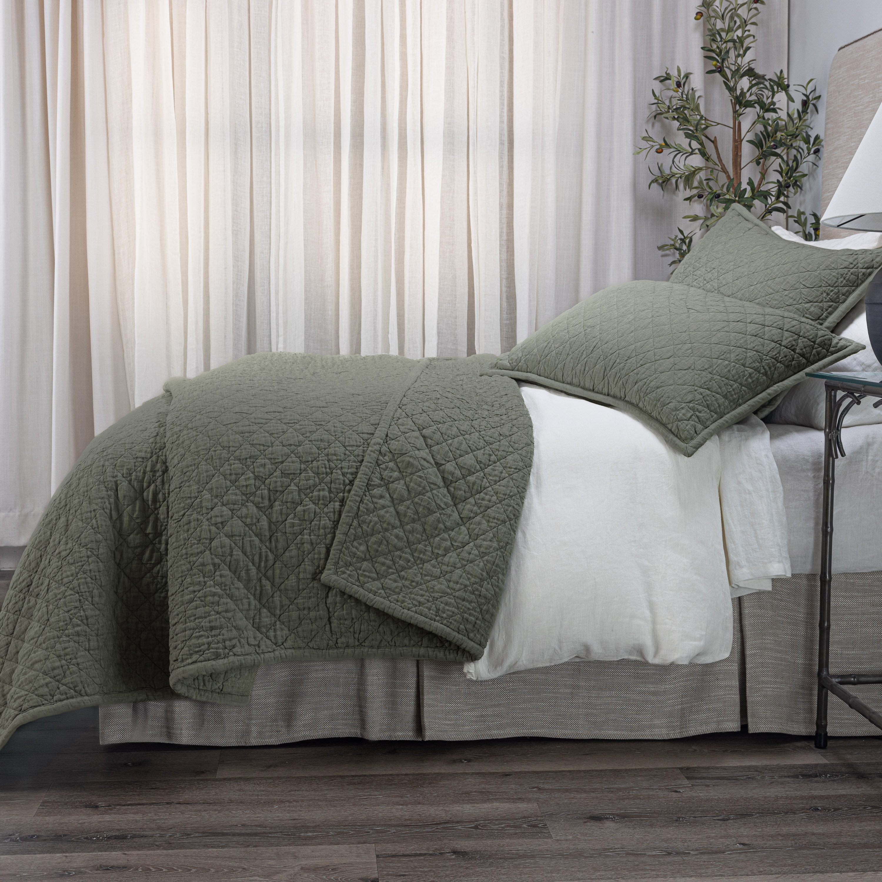 Elevate your bedding with the Dale Linen Quilt, crafted from 100% fine Belgian linen on both the front and back for luxurious softness and durability. Machine quilted in a timeless diamond pattern and finished with a padded piped edge, this quilt exudes elegance and refinement. Available in 7 Custom sophisticated colors as part of the Special Order program, the Dale Linen Quilt offers endless style possibilities for any bedroom decor.