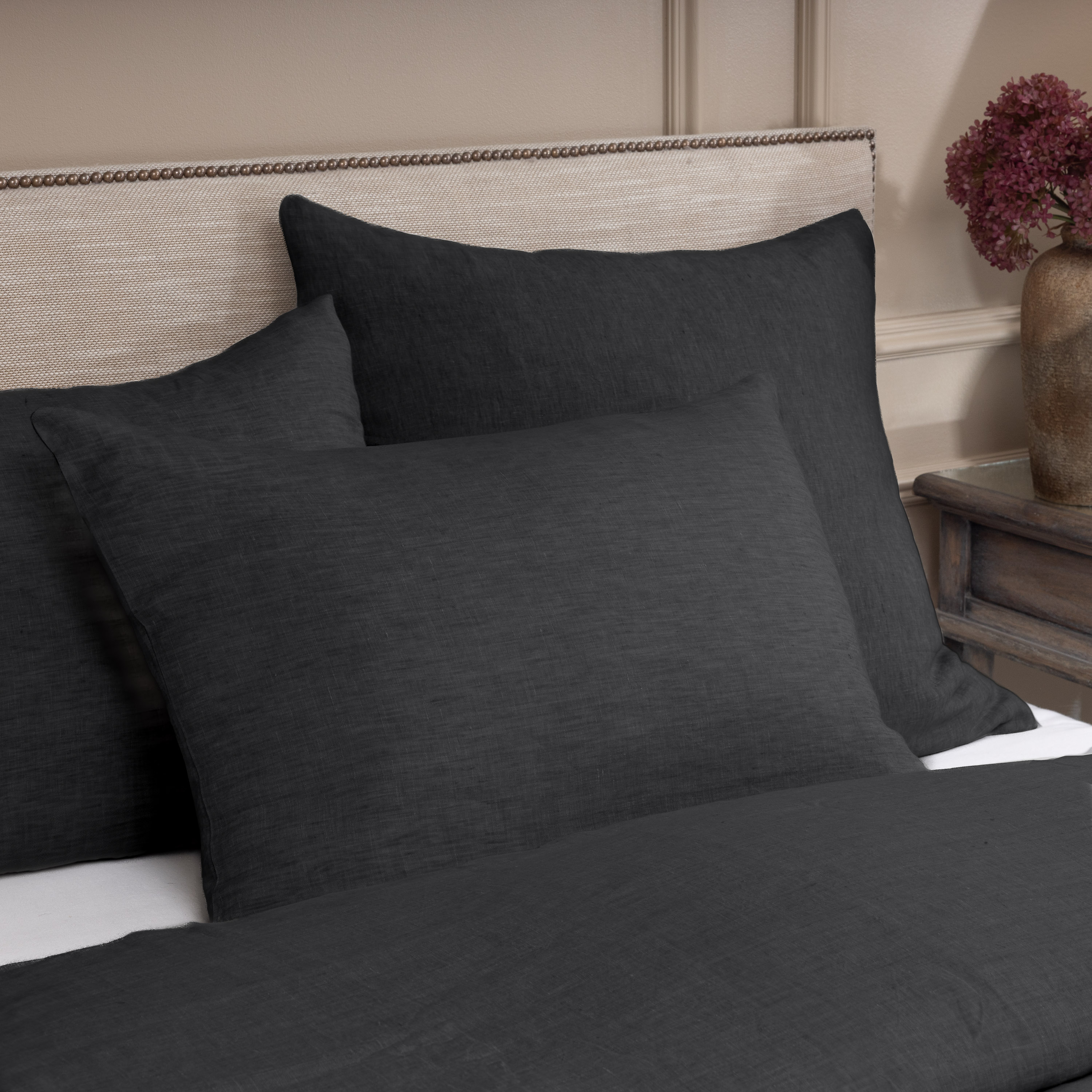 The uncomplicated Damara linen duvet cover and shams are simple knife edge duvet with button opening. Simply styled yet luxurious in material.