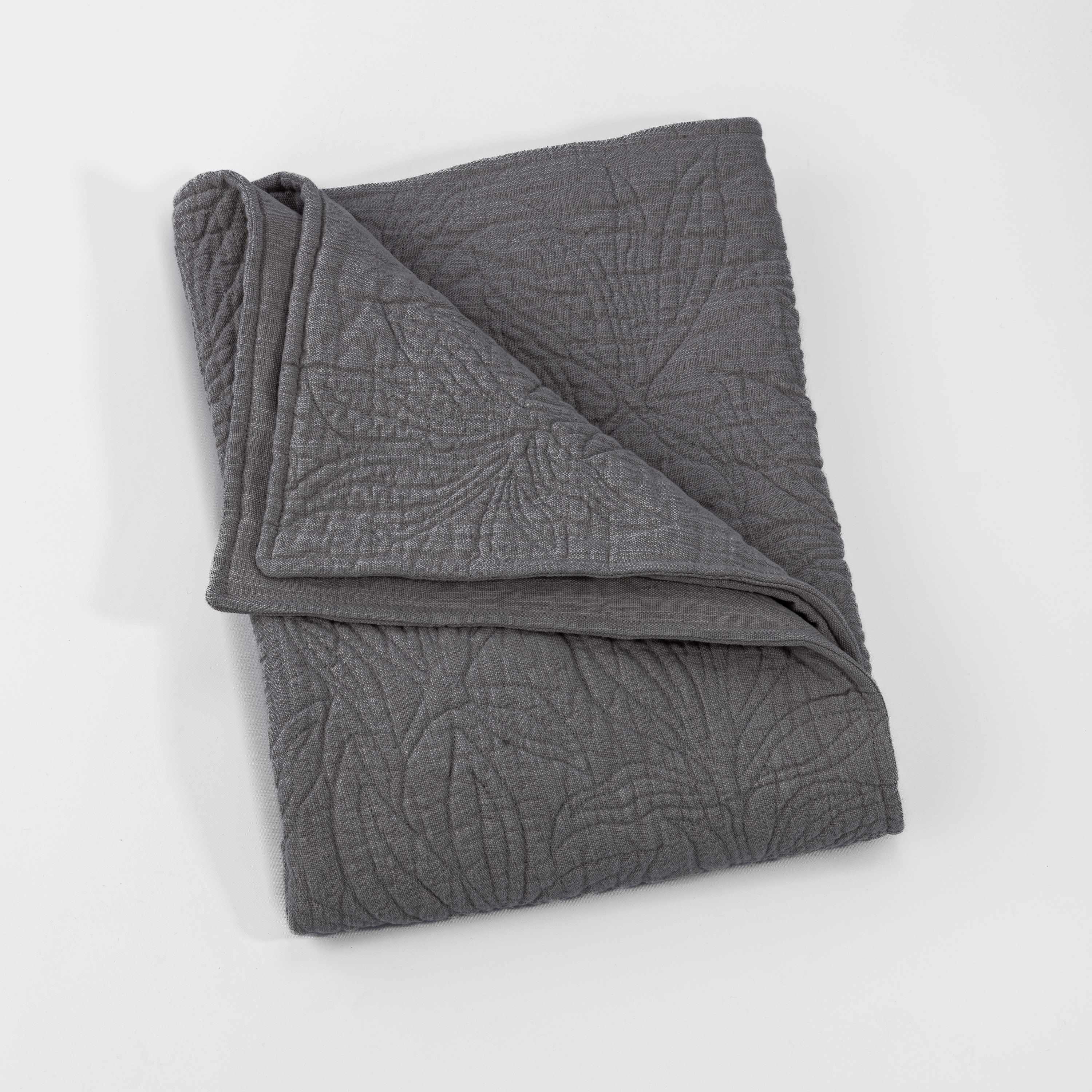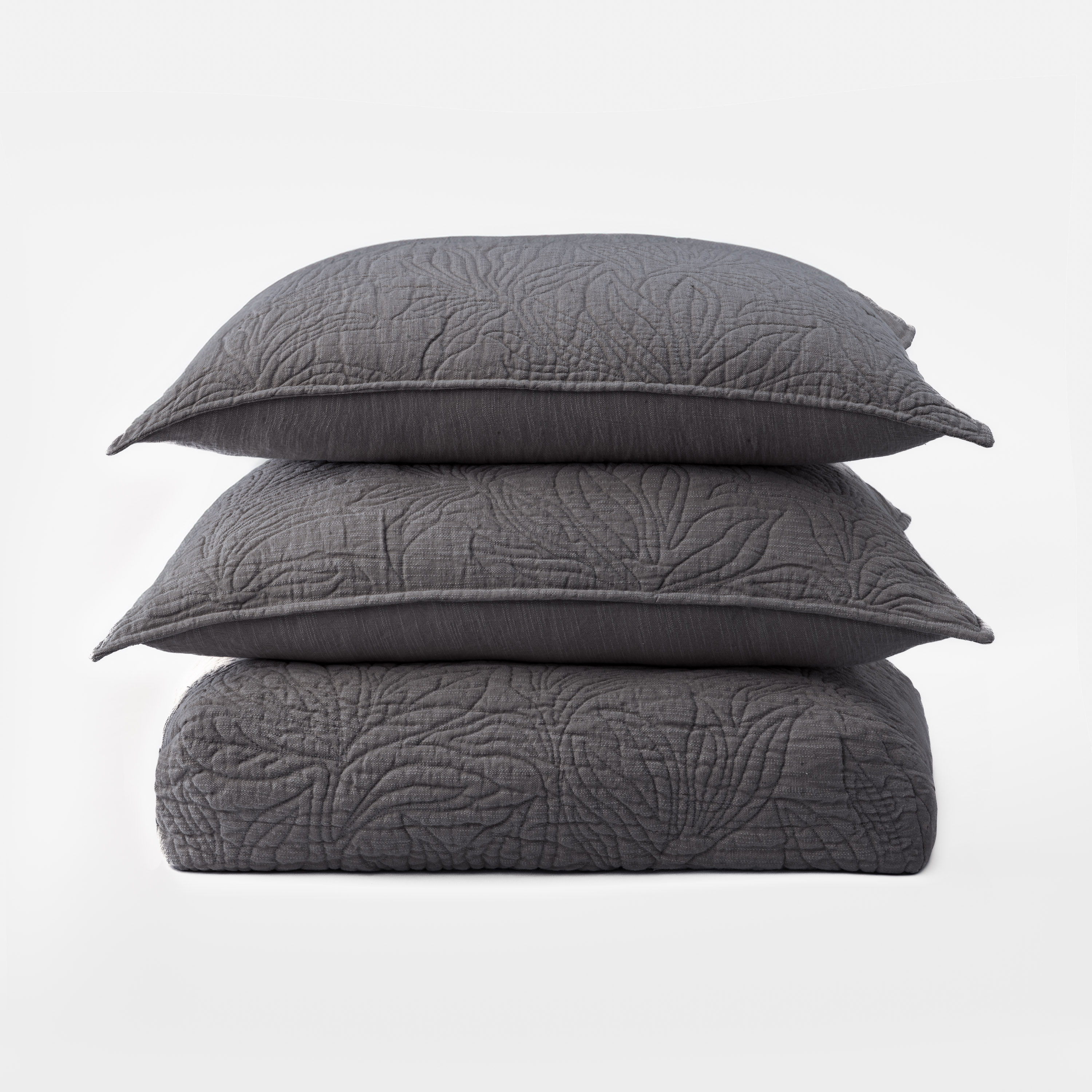 The Davina features a beautifully yarn-dyed fabric that blends the softness of cotton with the luxurious feel of linen. Hand-guided machine quilting showcases a stunning graphic foliage and stylized floral design, creating an elegant yet refreshing aesthetic that nods to tradition while being firmly planted in the current design landscape.