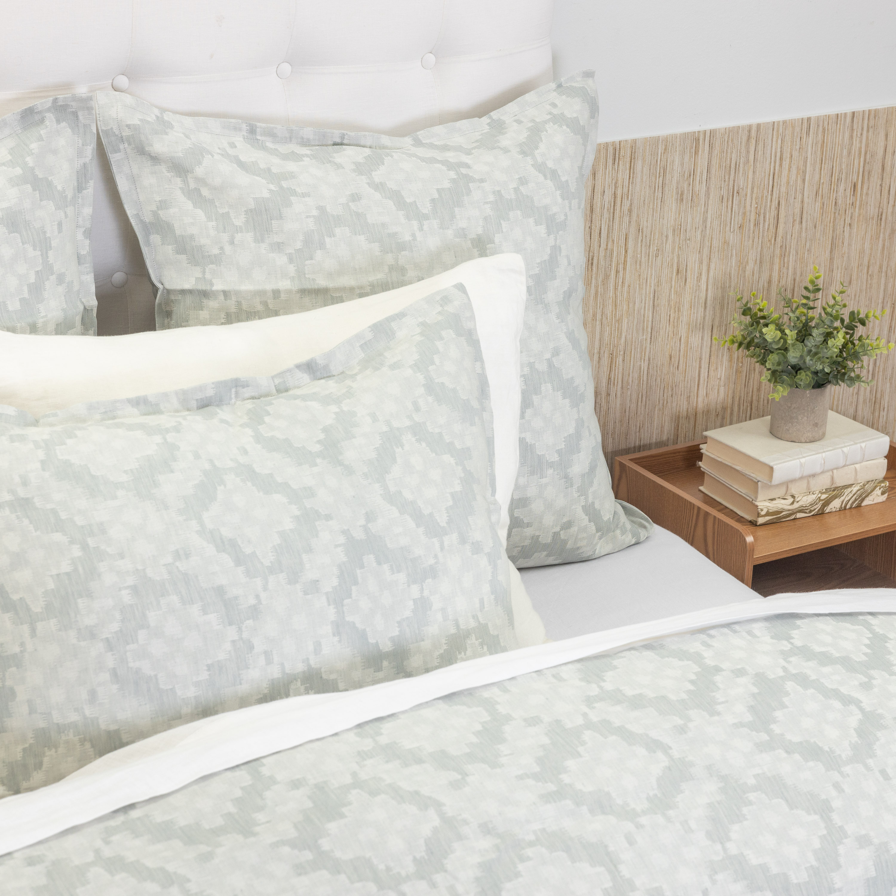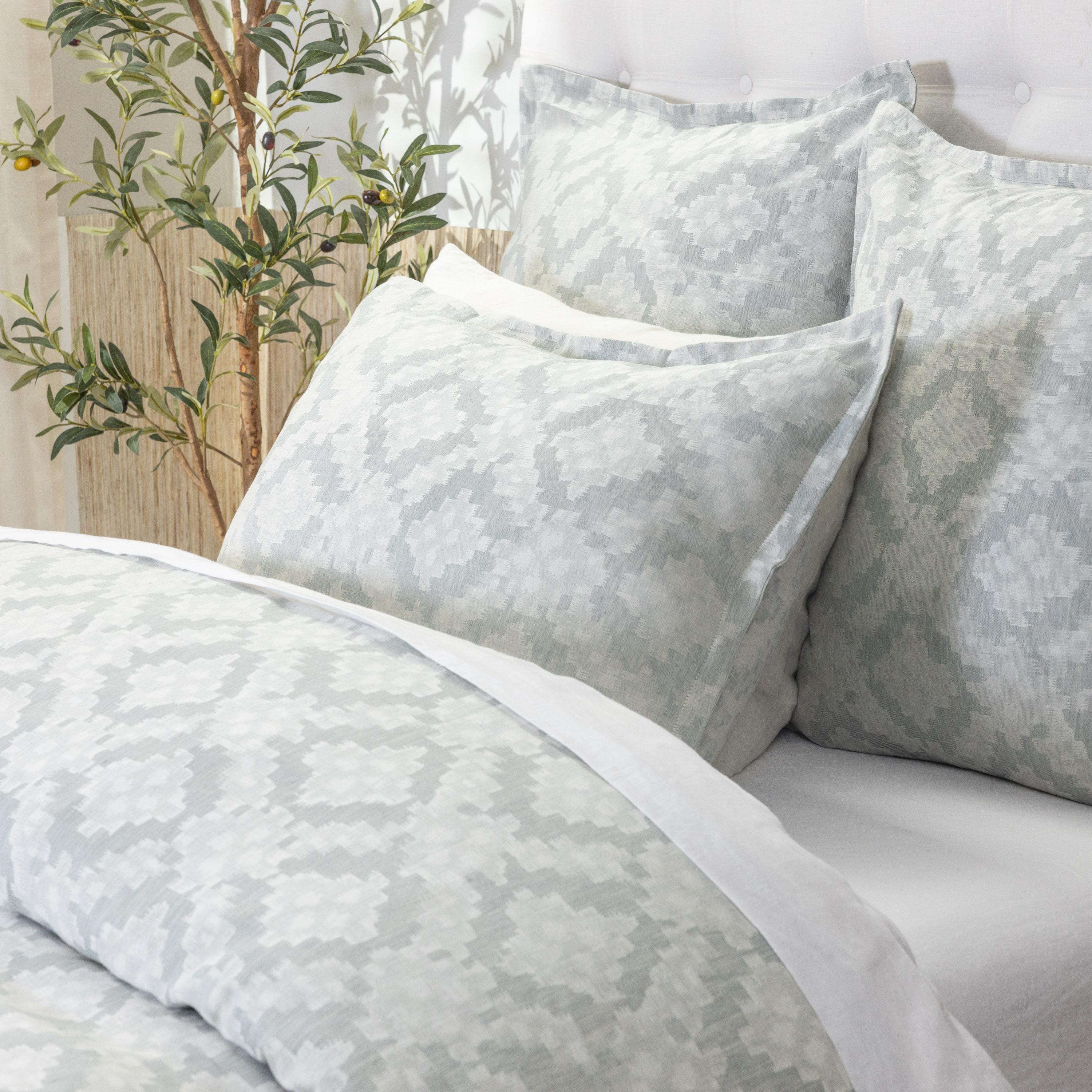 Inspired by traditional Ikats, the Dawson Duvet Cover is a woven of fine linen and cotton in a timeless lattice of irregular geometric elements. With a variety of weave styles used to construct this duvet, it can easily shift from a relaxed to a more polished sensibility.