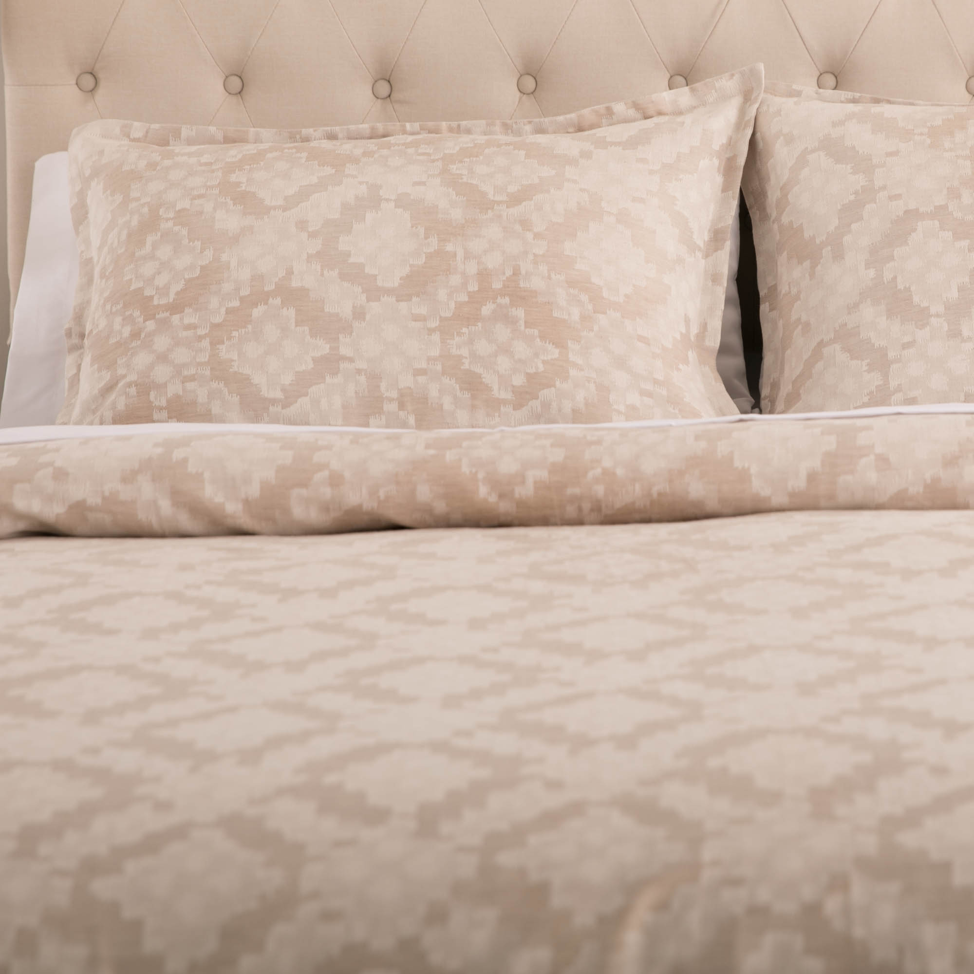 Inspired by traditional Ikats, the Dawson Duvet Cover is a woven of fine linen and cotton in a timeless lattice of irregular geometric elements. With a variety of weave styles used to construct this duvet, it can easily shift from a relaxed to a more polished sensibility.