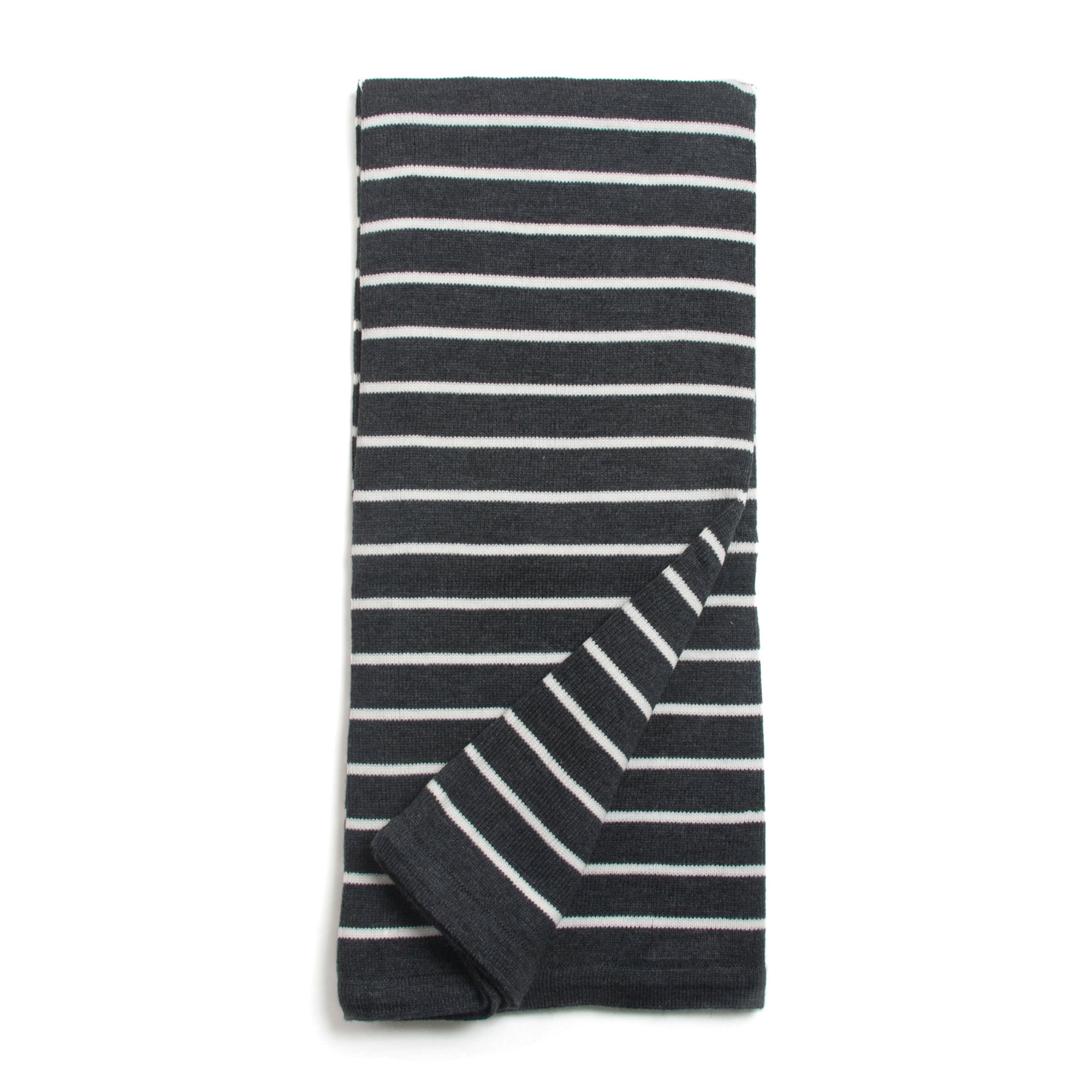 Beautiful and soft blend of wool and acrylic makes this throw soft and smart. Grey throw with thin lines of white and solid border. The pillow shows of its great look with coconut shell buttons.