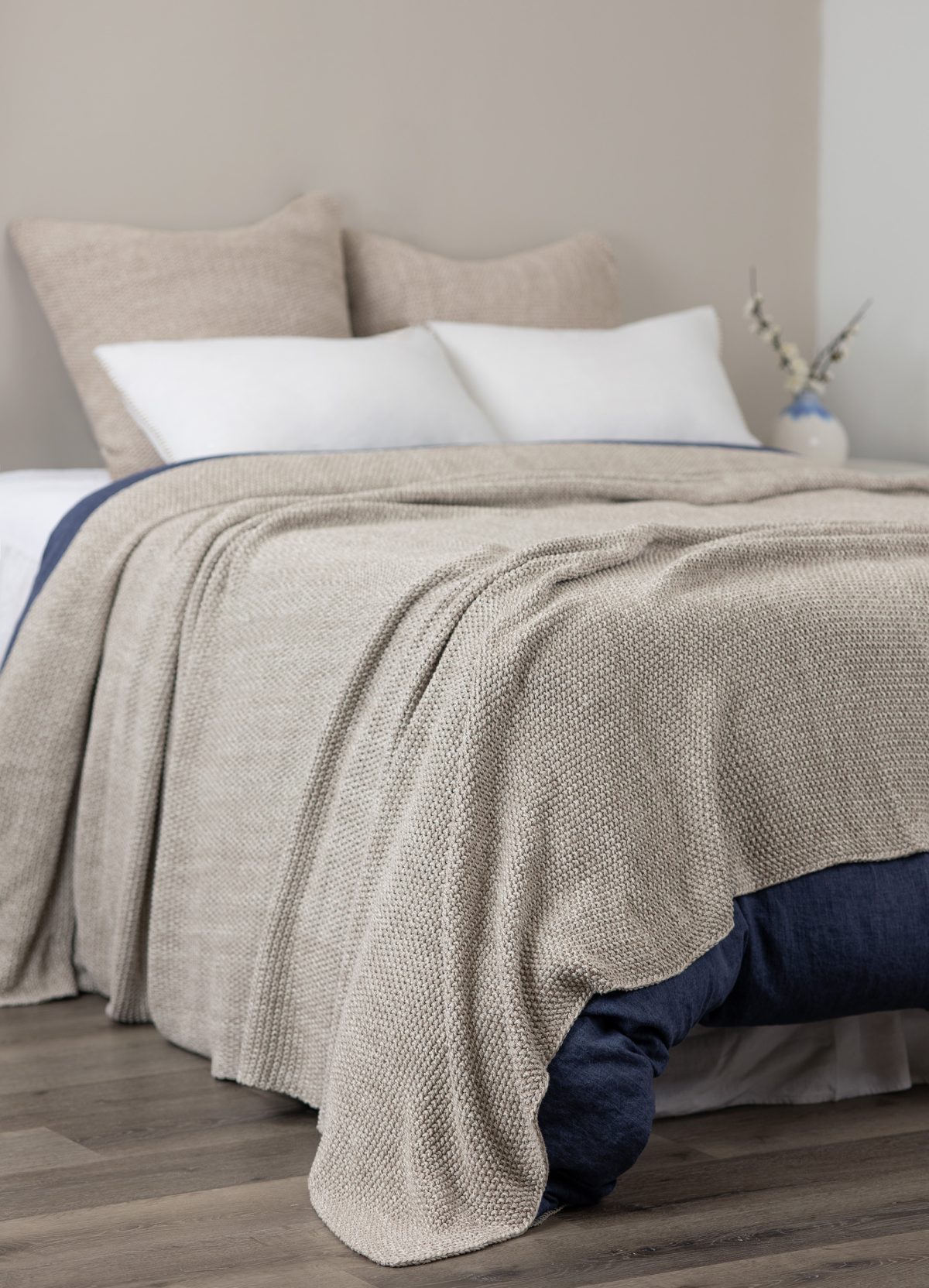This soft, heathered cotton knit coverlet and euro shams offers cozy texture to any style. Also look for our Egan throws and Pillows.
