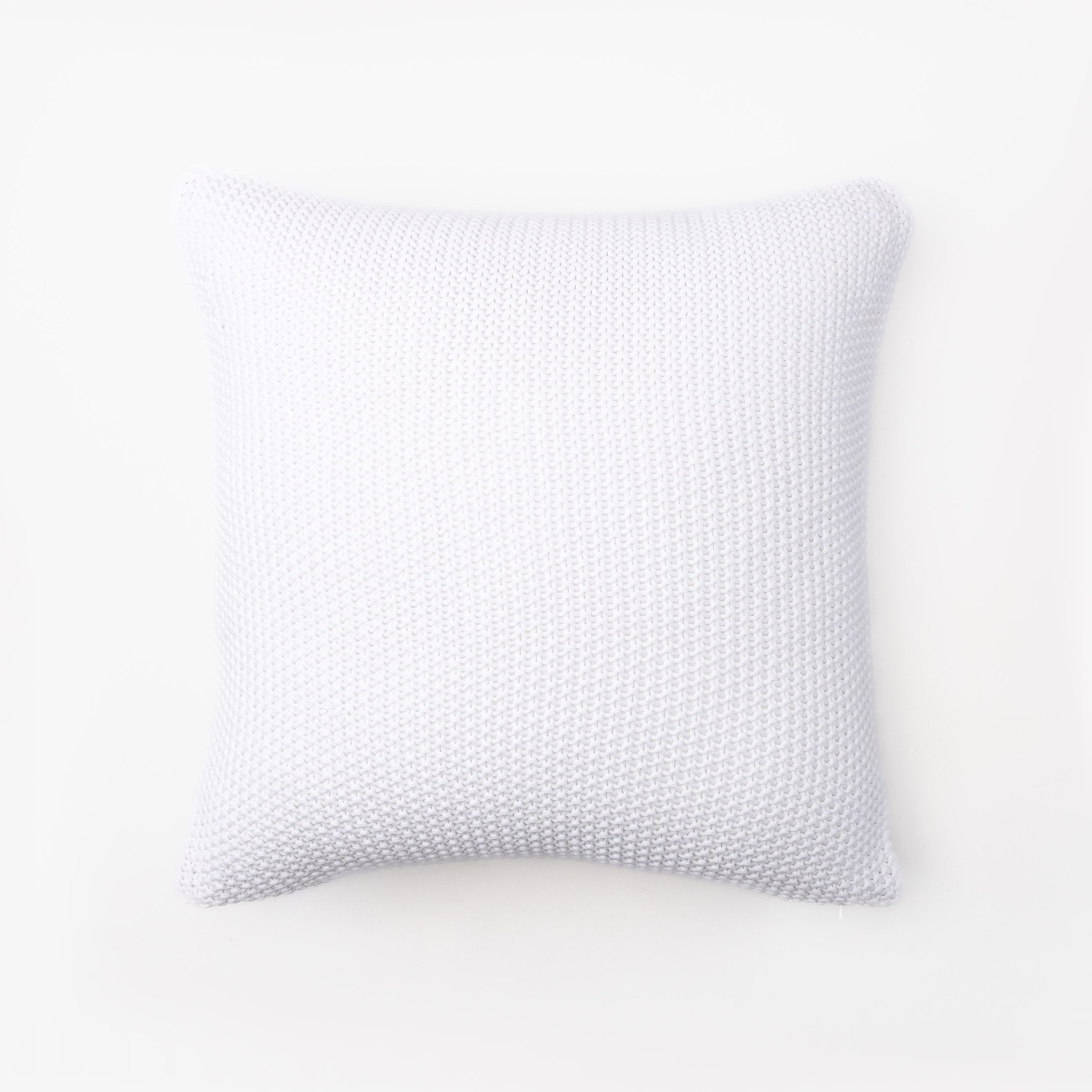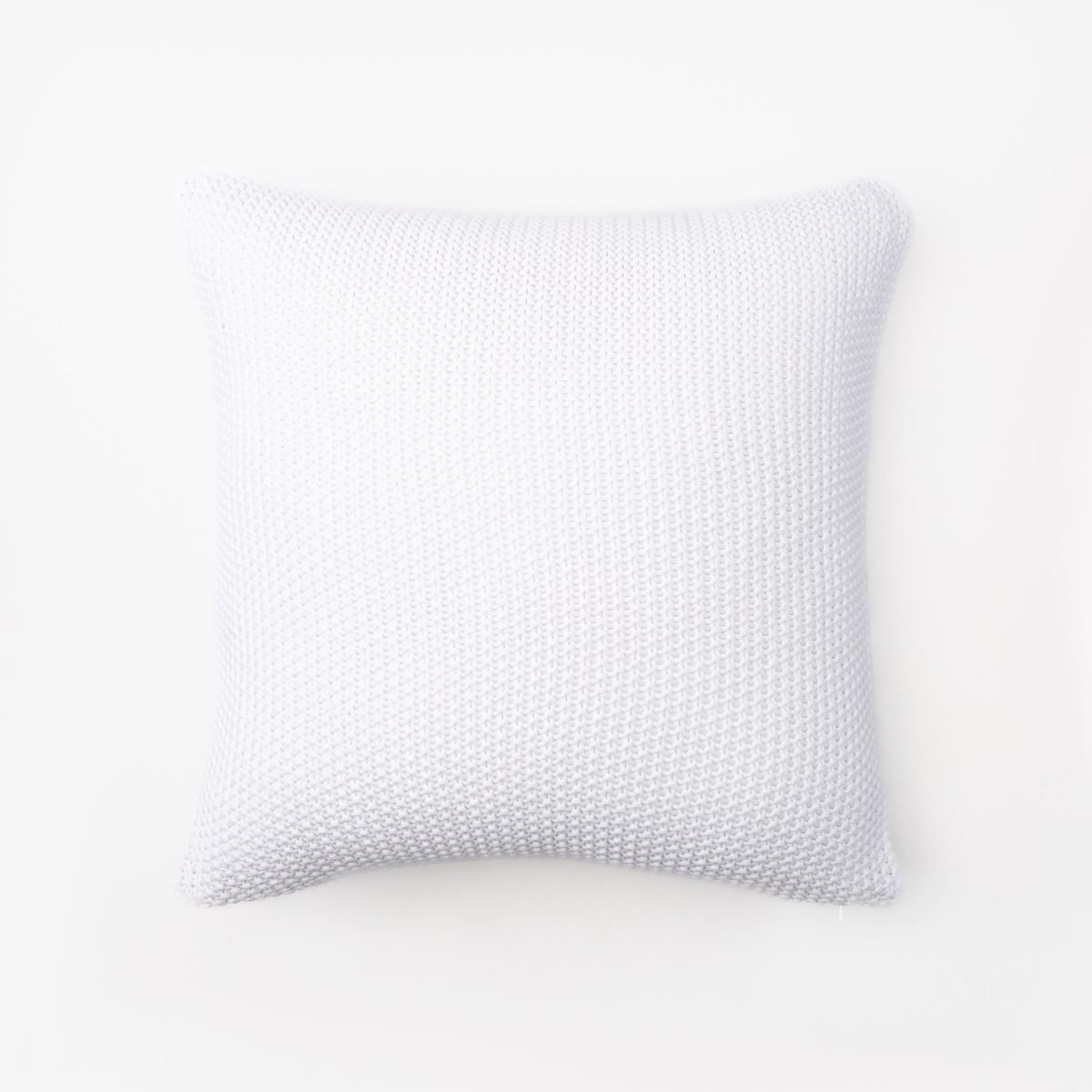 Bold stitches make a remarkably cozy statement on our Egan top throw and pillow. Also available in twin, queen and king and euro shams. Knitted with smooth cotton yarn these pieces work in harmony with the elegant white chambray Dale Duvet Cover.