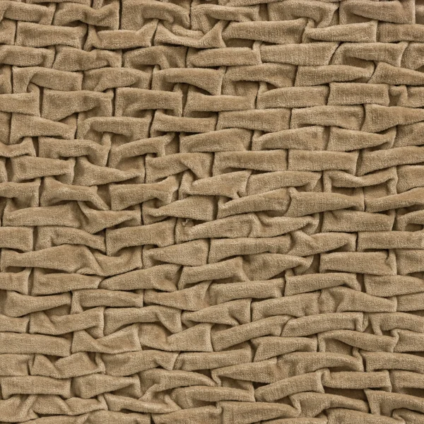 Yards of rich cotton velvet are hand gathered and tacked into a beautiful basket weave pattern for a texture that is otherworldly. This collection is further embellished by an exceptional cotton velvet round bolster with elongated ties. This set pairs perfectly with our Jerome linen duvet covers and tailored bed skirt.
