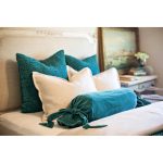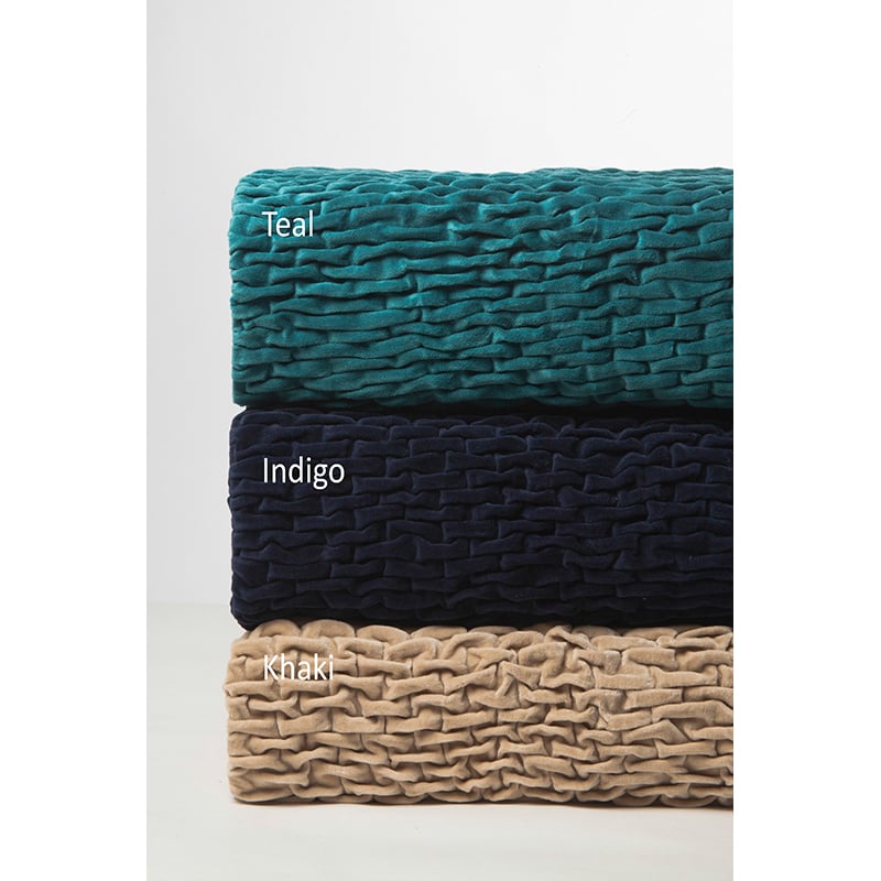 Yards of rich cotton velvet are hand gathered and tacked into a beautiful basket weave pattern for a texture that is otherworldly. This collection is further embellished by an exceptional cotton velvet round bolster with elongated ties. This set pairs perfectly with our Jerome linen duvet covers and tailored bed skirt.