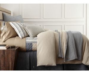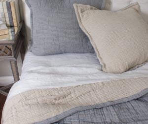 The Ernest coverlet features a large-scale on-point plaid design and is fully reversible. With one side in light natural colors and the other in darker hues, this collection is perfect for changing your look with the seasons or your mood. This buttery-soft coverlet is made from 100% cotton and finished with a three-quarter inch natural linen flange for an elegant touch.