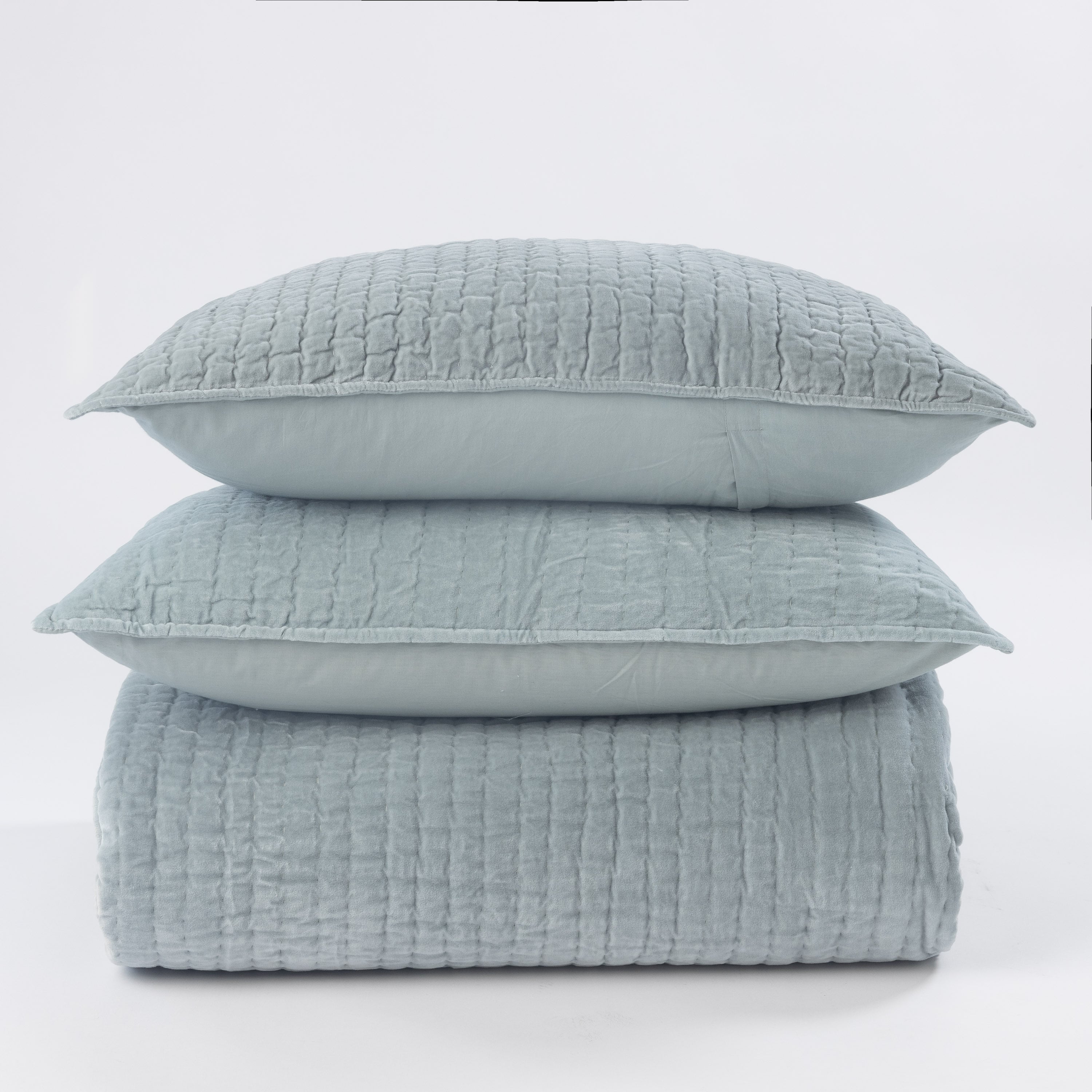 The Ethan quilt collection is an established visual and tactile treat. Simply designed with a running quilting stitch to allow the luxuriousness of the cotton velvet to stand out. From the Master to the bunk room, from stately to understated, the Ethan quilt is an easy go-to choice. This quilt collection has and does transcend styles and indeed stands the test of time.