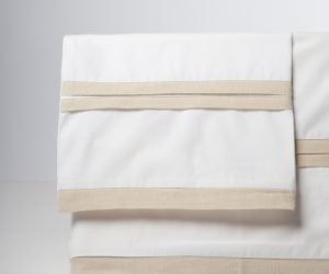 Inspired by men’s suiting, this mid-scale windowpane skirt is constructed of natural cotton and linen. Designed as a straight panel design and constructed in three pieces with a 21” drop, this skirt can easily be adjusted on site to any height up to 21” simply by placement. The Evans Bed Skirt is available in