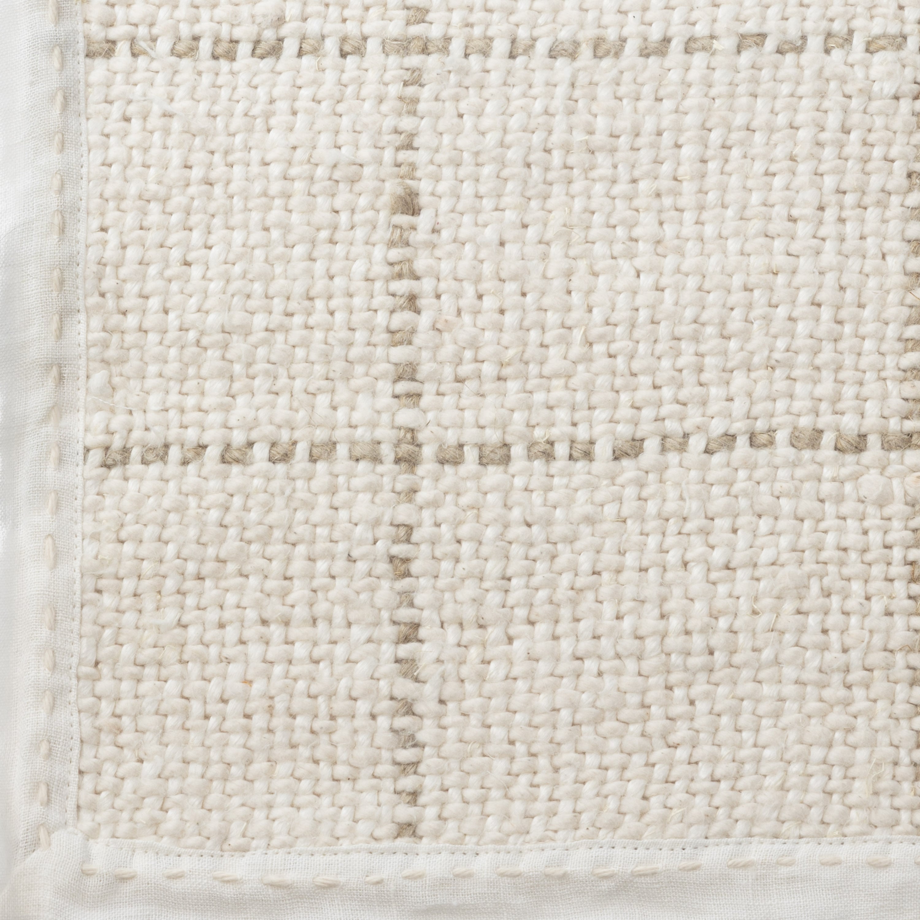 Inspired by men’s suiting, this mid-scale window pane blanket is constructed of natural cotton and linen and finished with a hand stitched fine linen flange.