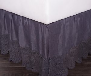 Eveline Linen Steel Blue Crochet Bed Skirt, Queen