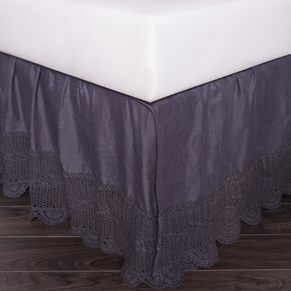 Eveline Linen Steel Blue Crochet Bed Skirt