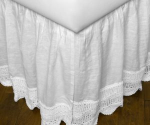 Eveline Linen White Crochet Bed Skirt, Queen