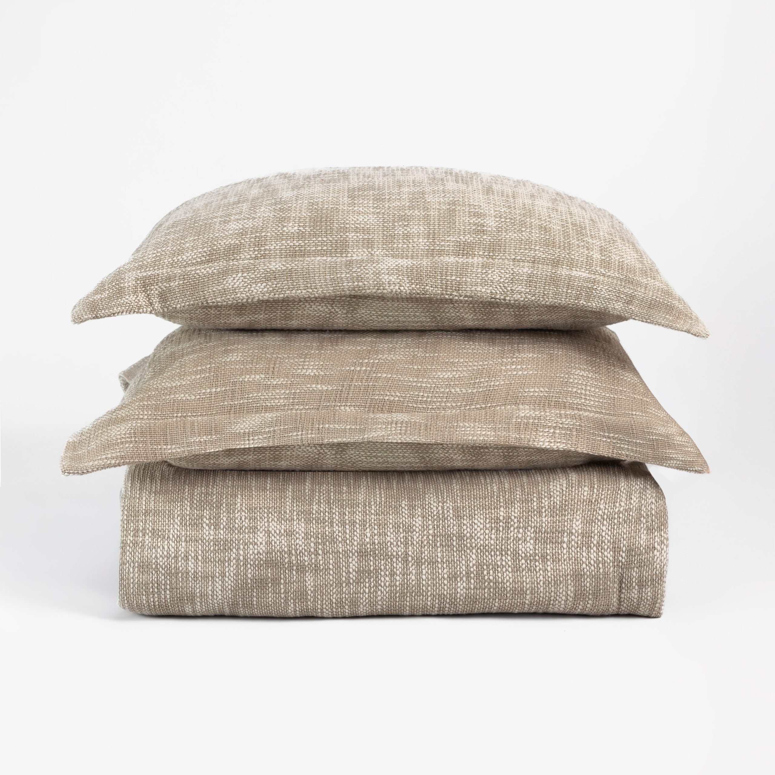 Evol is constructed of slubby cotton yarns running both the warp and weft giving this duvet cover dramatic texture with a superb hand feel. Each coloration takes on a unique personality as it blends with slubs of ivory and can easily shift stylistically from casual to formal based on other bedding selections. This duvet is backed with a cotton/flax blend and has a hidden button closure.