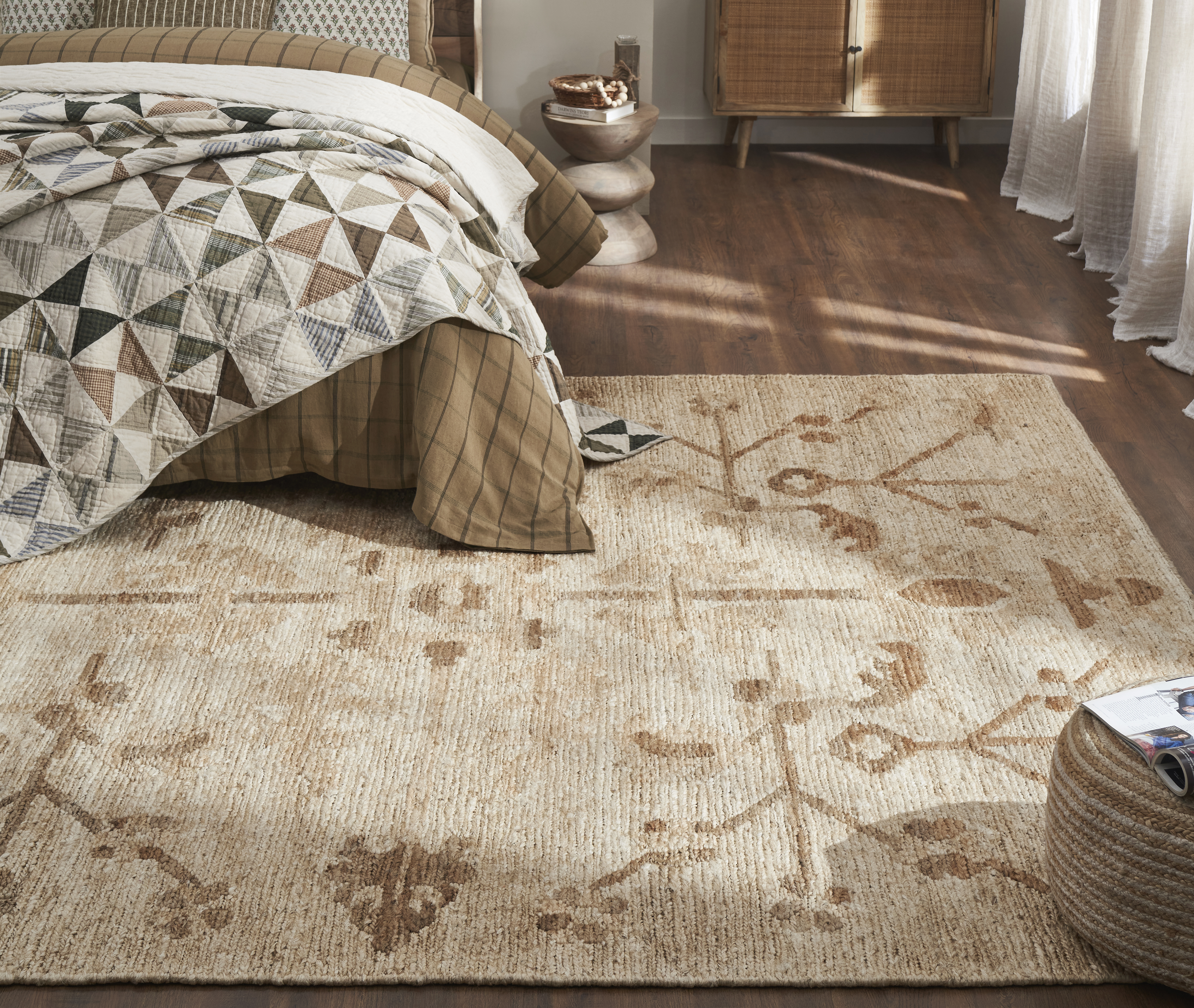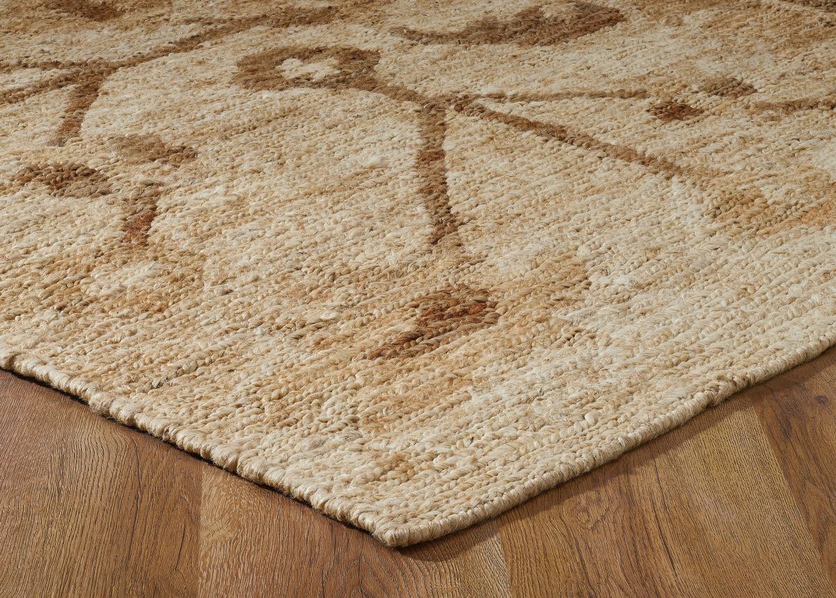 Rooted in heritage craftsmanship, this handwoven rug is crafted in the traditional soumak style using various tones of natural and bleached jute. The result is a richly textured surface with earthy depth and dimension. A traditional-inspired pattern emerges in the weave—both distinct and subtle—adding quiet character without overwhelming the space. Durable yet refined, this rug brings an understated, organic elegance to any room.