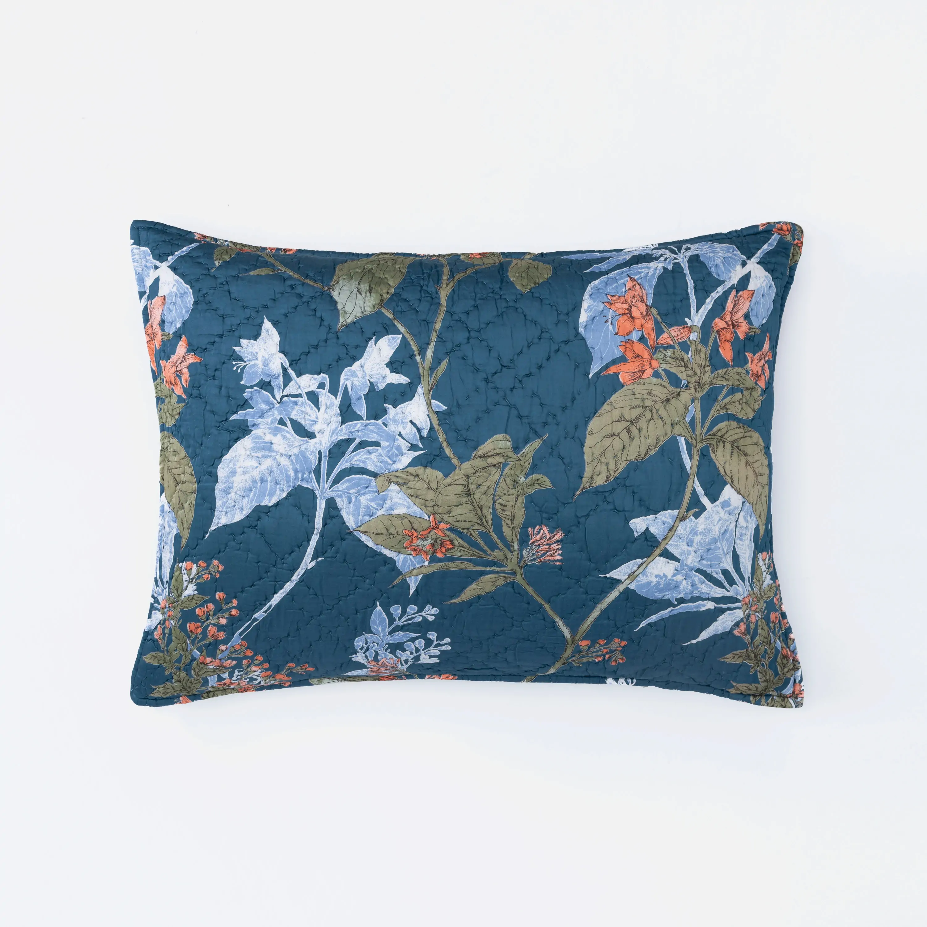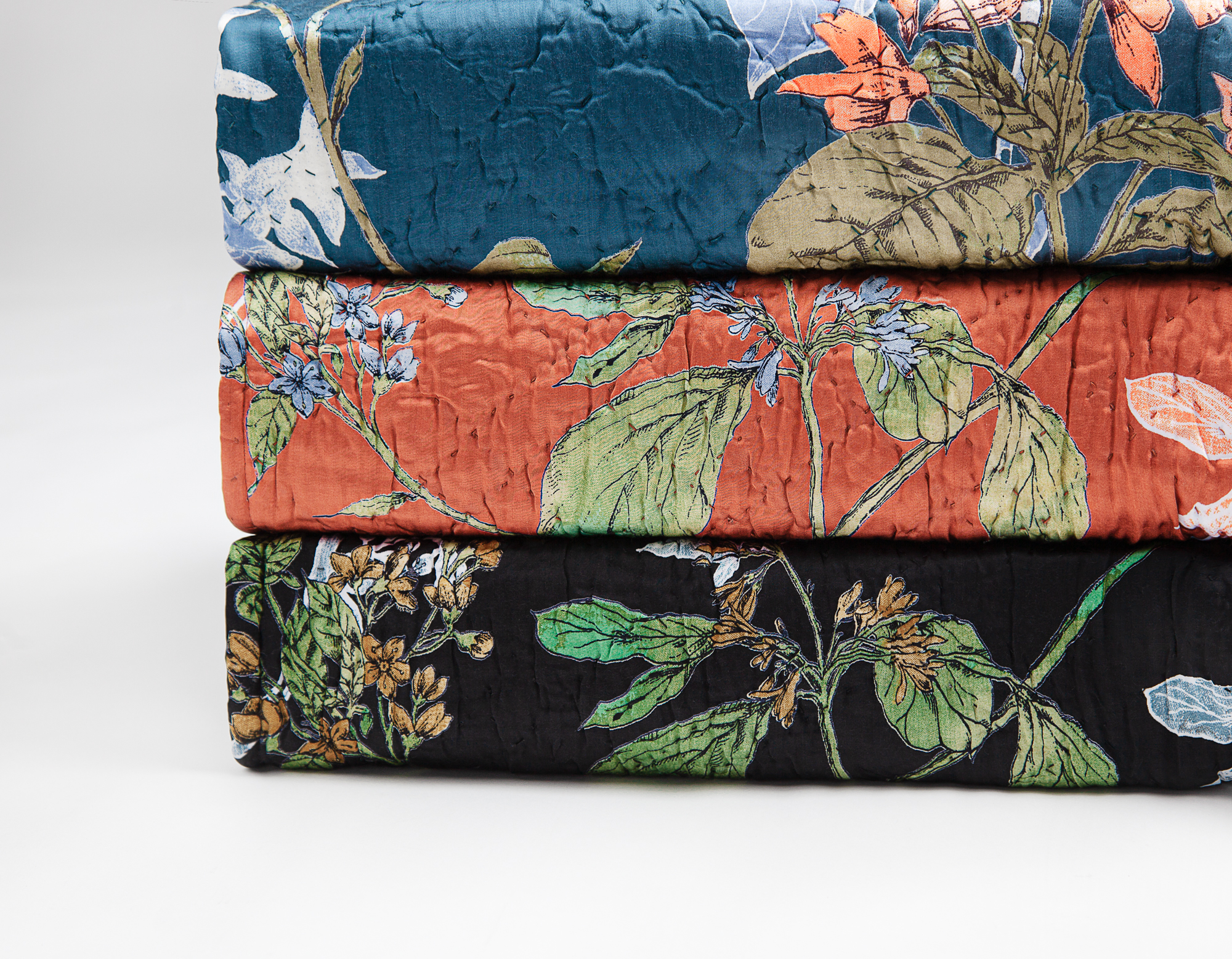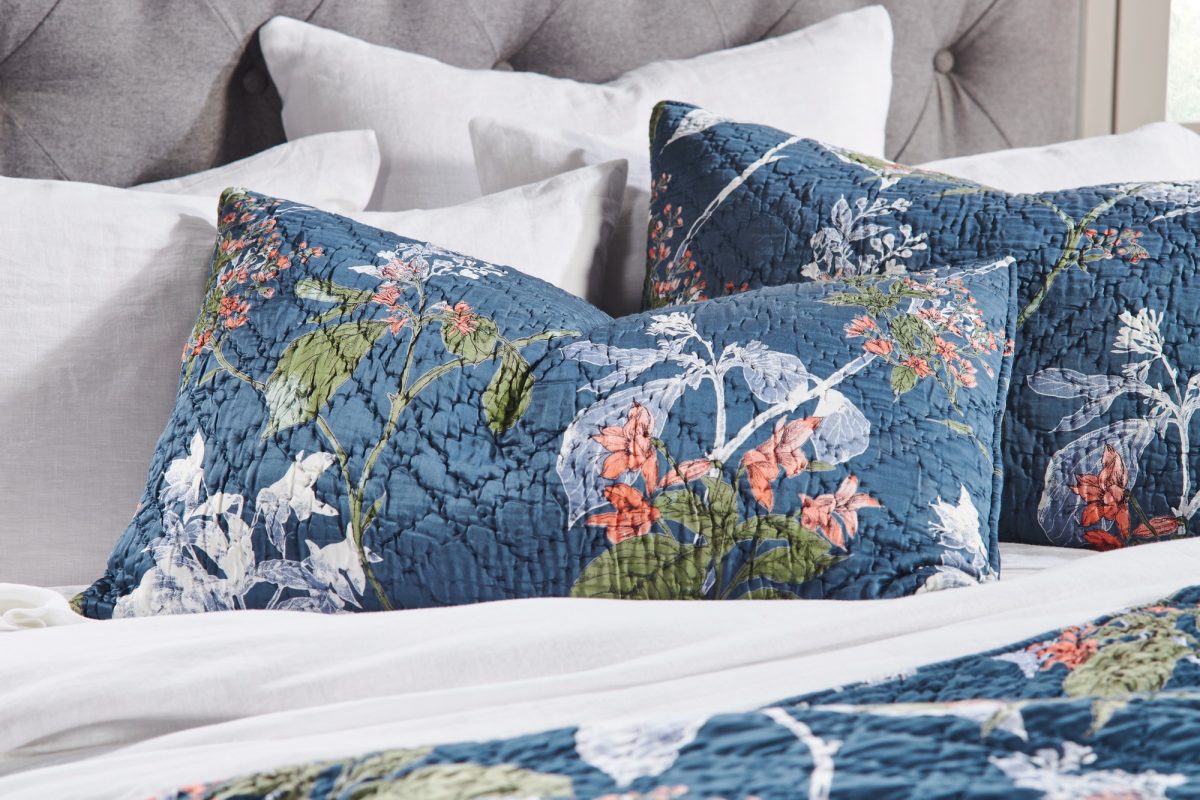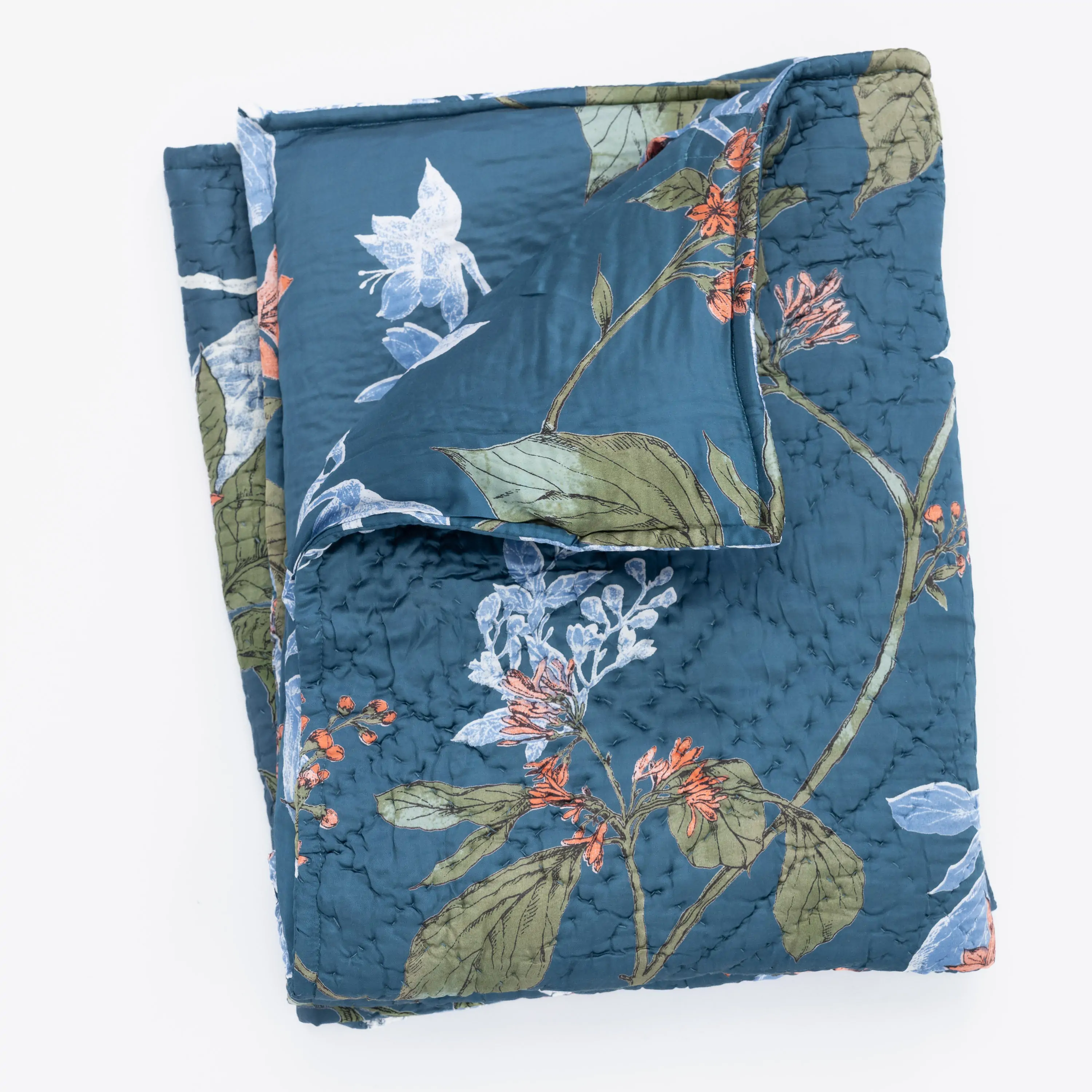 This trailing floral is inspired by vintage chinoiserie patterns, with fresh flair. Printed on a sleek rayon sateen ground and hand quilted, the Fitzgerald quilt has a lustrous yet livable finish. The Fitzgerald quilt is available in: