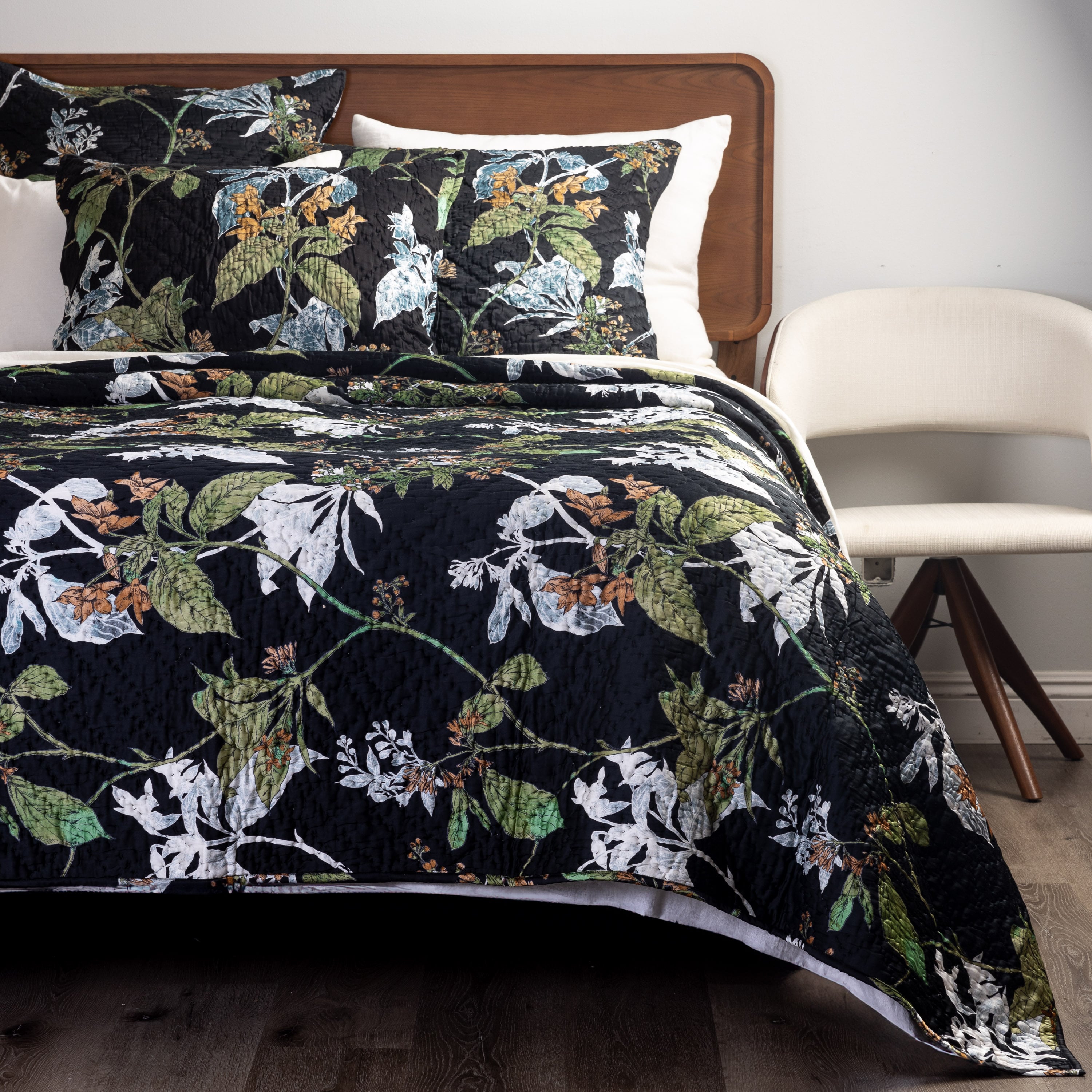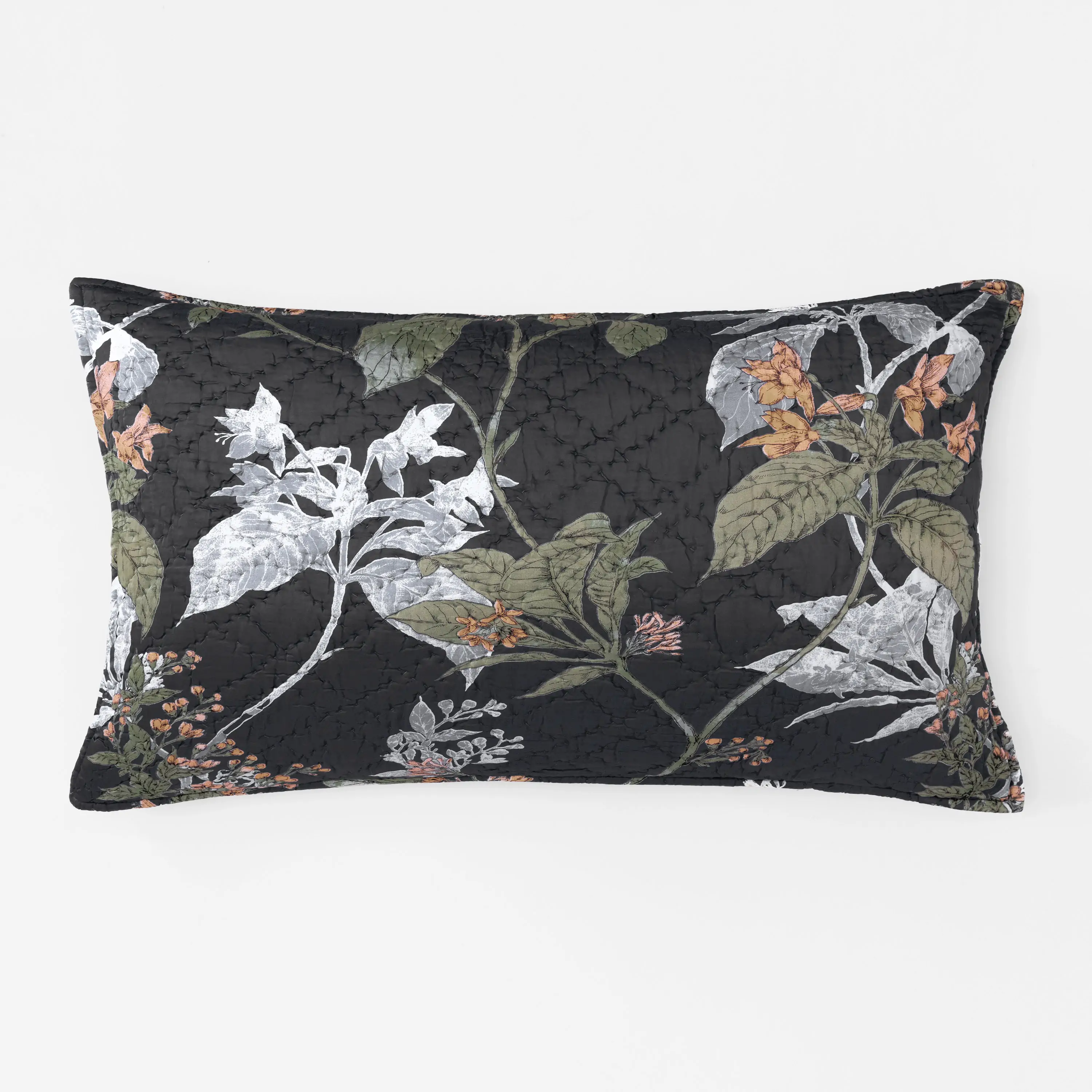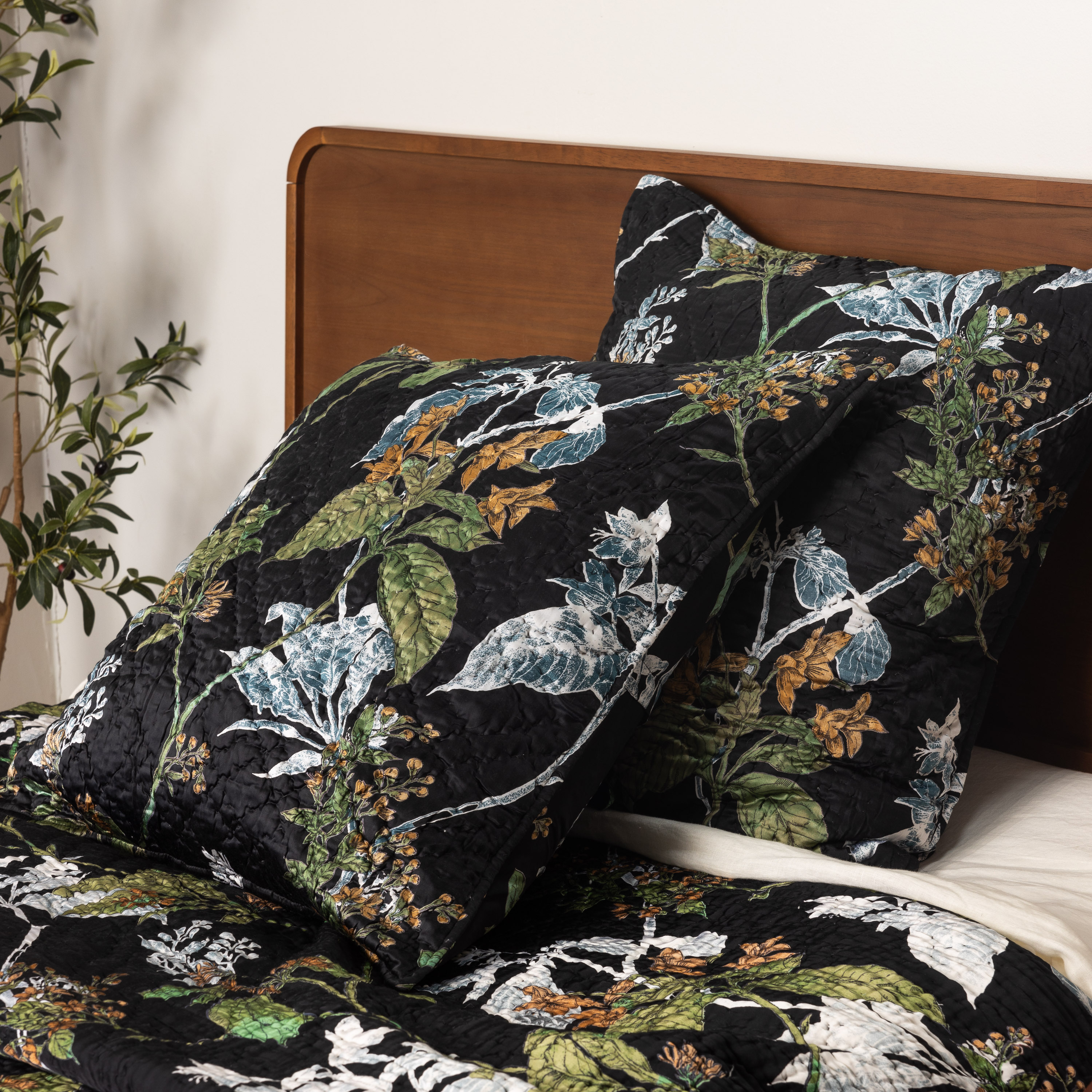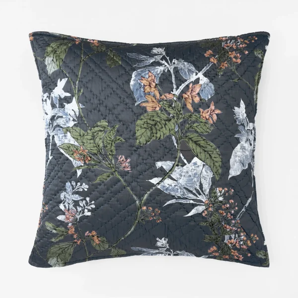 This trailing floral is inspired by vintage chinoiserie patterns, with fresh flair. Printed on a sleek rayon sateen ground and hand quilted, the Fitzgerald quilt has a lustrous yet livable finish. The Fitzgerald quilt is available in: