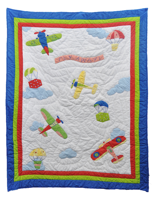 MULTICOLOR AIRPLANE EMBROIDERY WITH WHITE BACKGROUND QUILT