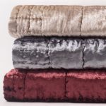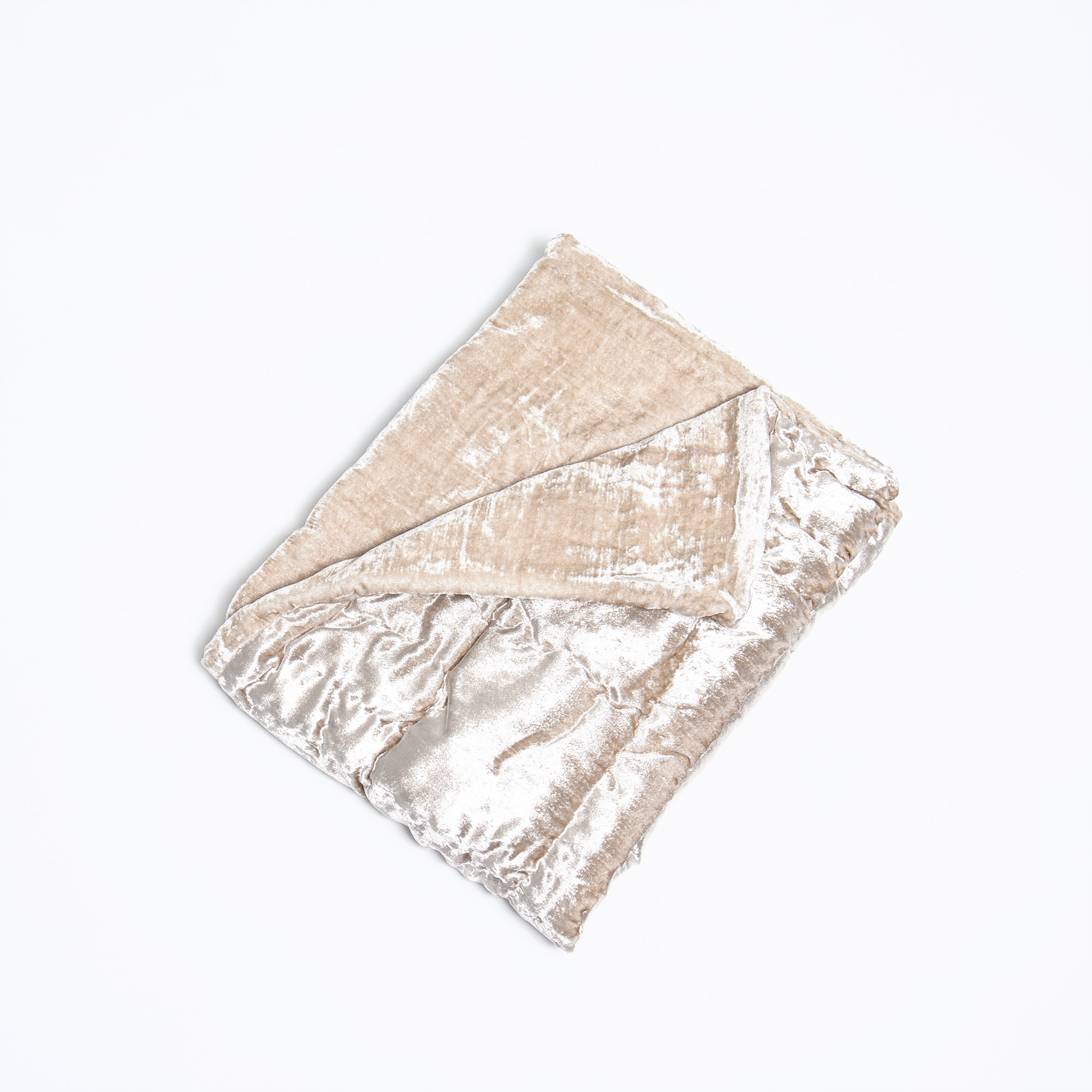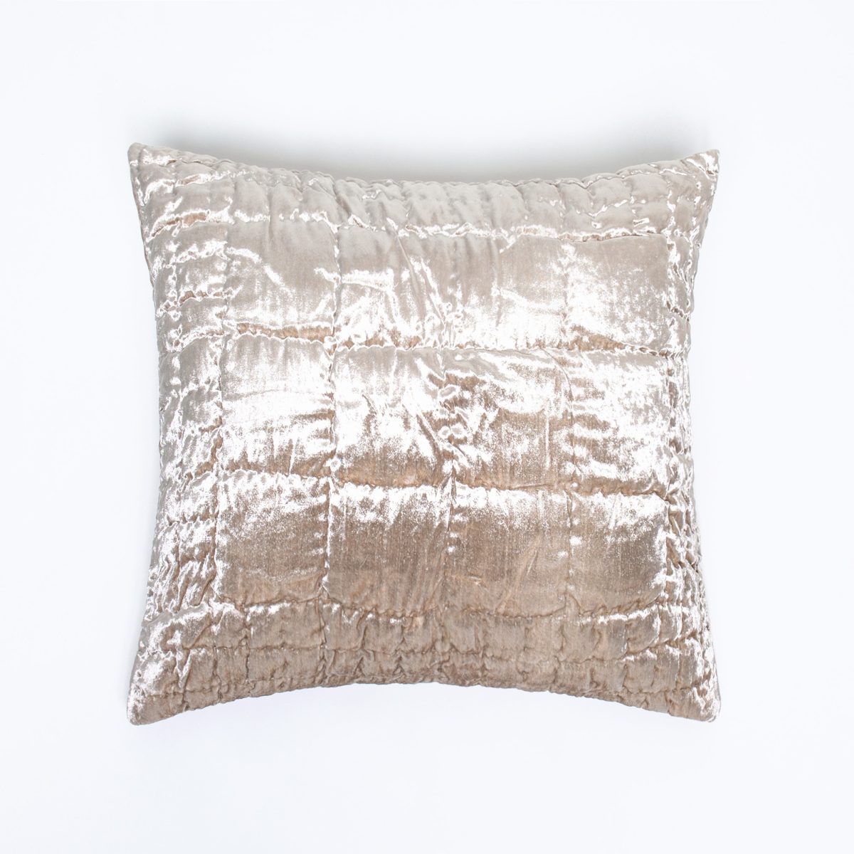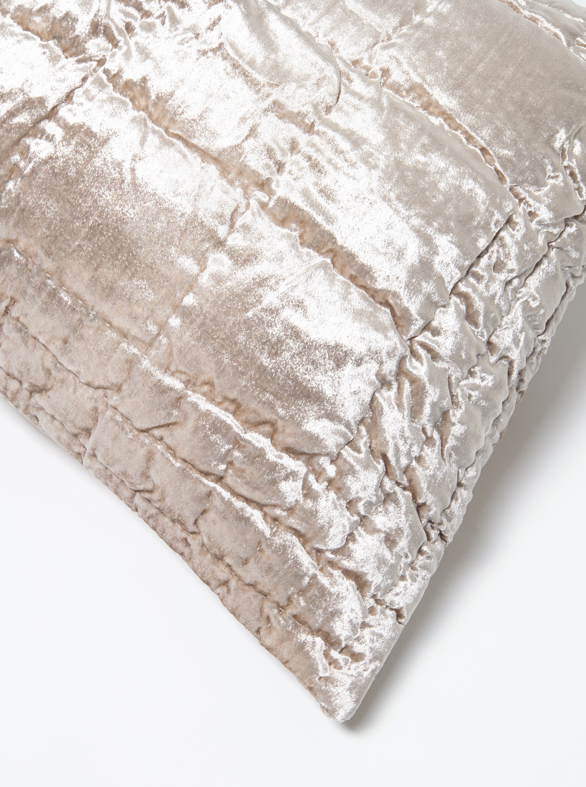 This lustrous velvet is backed with a contrasting cotton voile and hand quilted in a block pattern for exceptional softness and an eclectic style. Shams are self-backed.