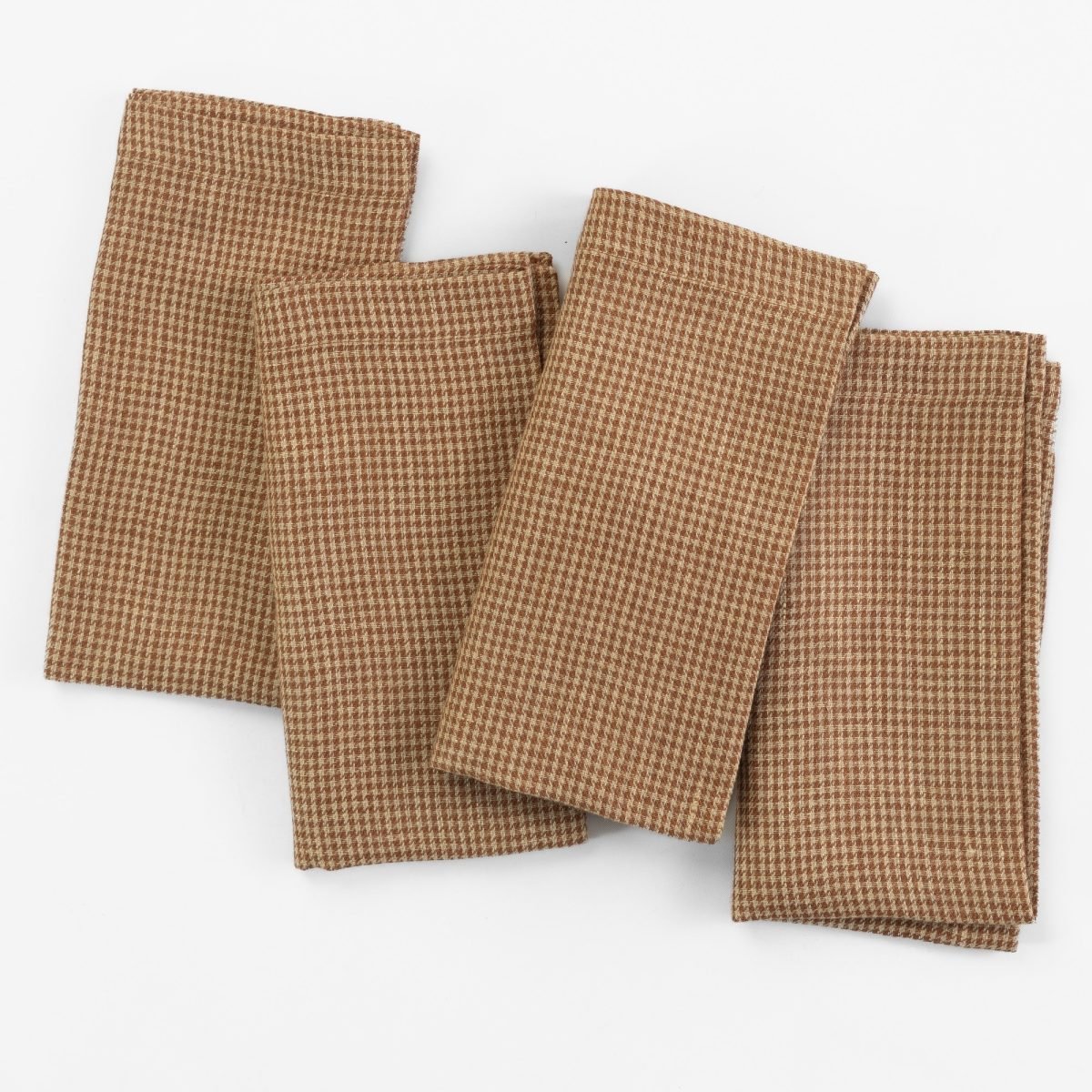 Woven in a refined houndstooth pattern, these saddle brown napkins blends timeless design with tactile richness. Yarn-dyed cotton threads in warm saddle brown and neutral oatmeal create subtle contrast and enduring depth.