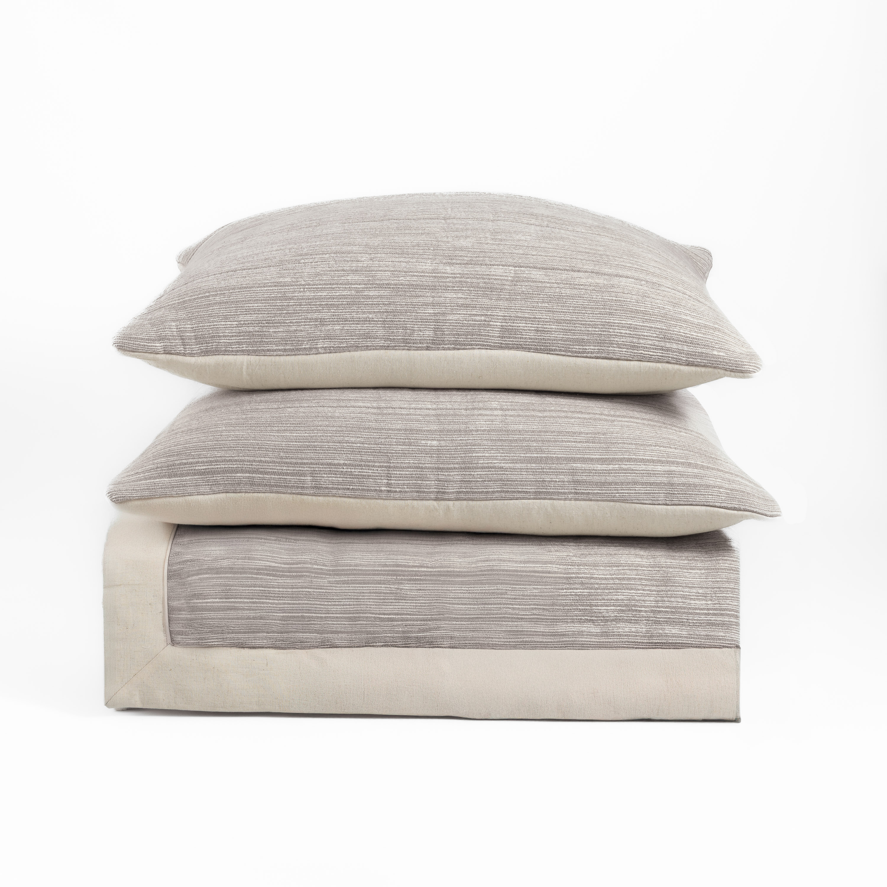| Pair the dynamic Gill Grey quilt with a duvet cover like Bryce Ivory with subtle detail to complement not compete.  Accents like Gavin, Hawke and Tahoma in ochre warm the ensemble and the Tammy Pencil bolster adds the collected, hand crafted finishing touch.