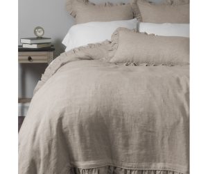 Graham is a loosely woven, basket weave of 100% pure linen giving this coverlet a sophisticated, hand-embroidered look. Due to the nature of this weave style, potential pulls in the decorative yarn are to be expected and appreciated.