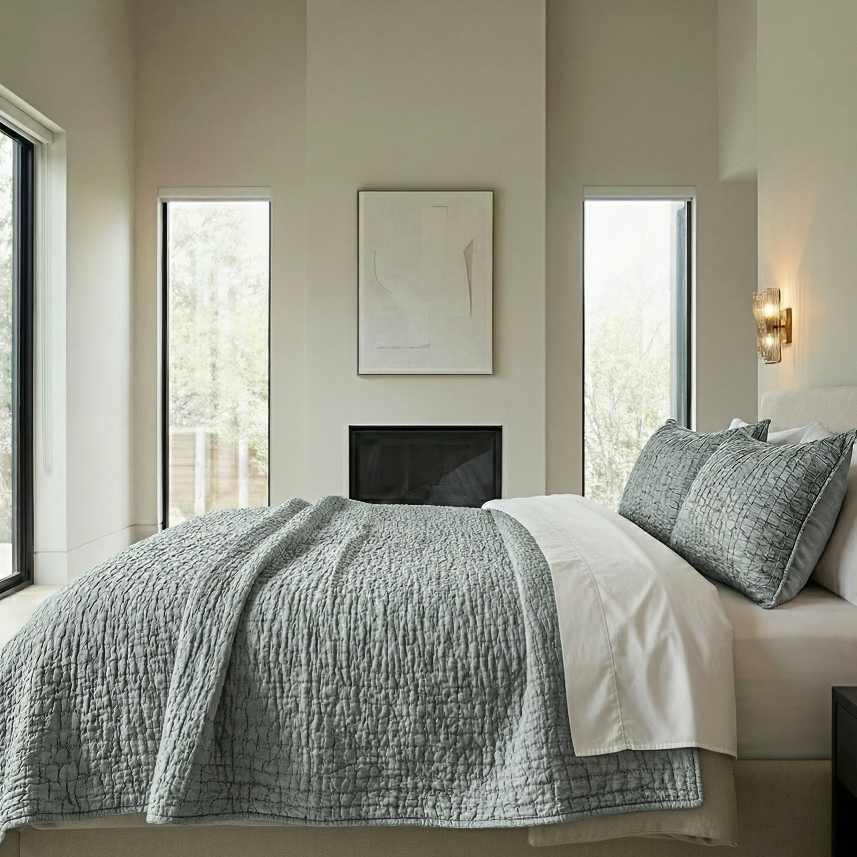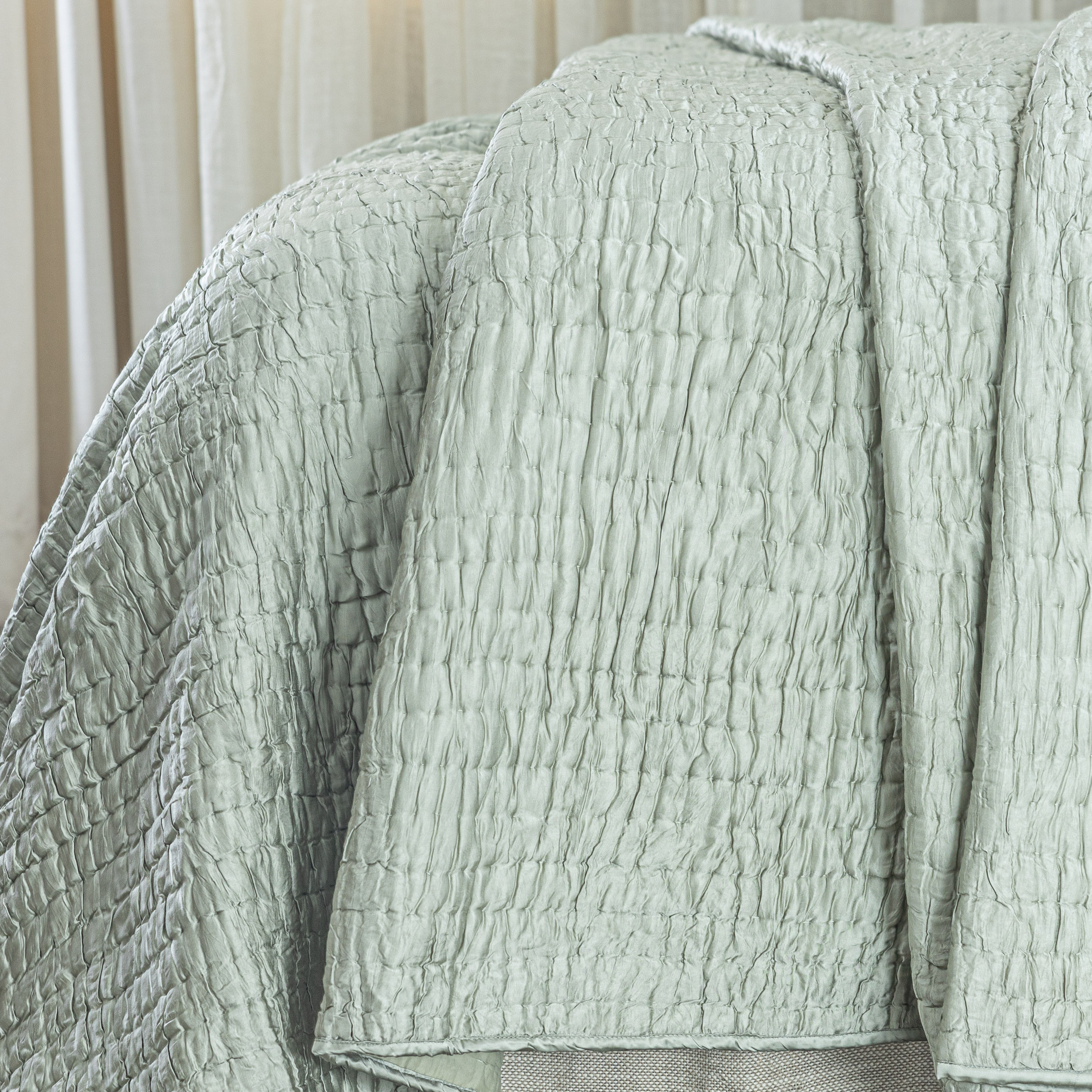 Yards of lustrous viscose sateen are gathered into loose ripples and hand quilted in place to create this collection with an organic chic aesthetic. Dress it up or dress it down by changing the companion parts and setting. The opulent Hadon quilt adds a sleekness to bed ensemble, that only our hand-crafted pieces can fulfill. For maximum softness it’s made of Cotton Modal (Modal is a type of Rayon made from Beech tree fibers.)