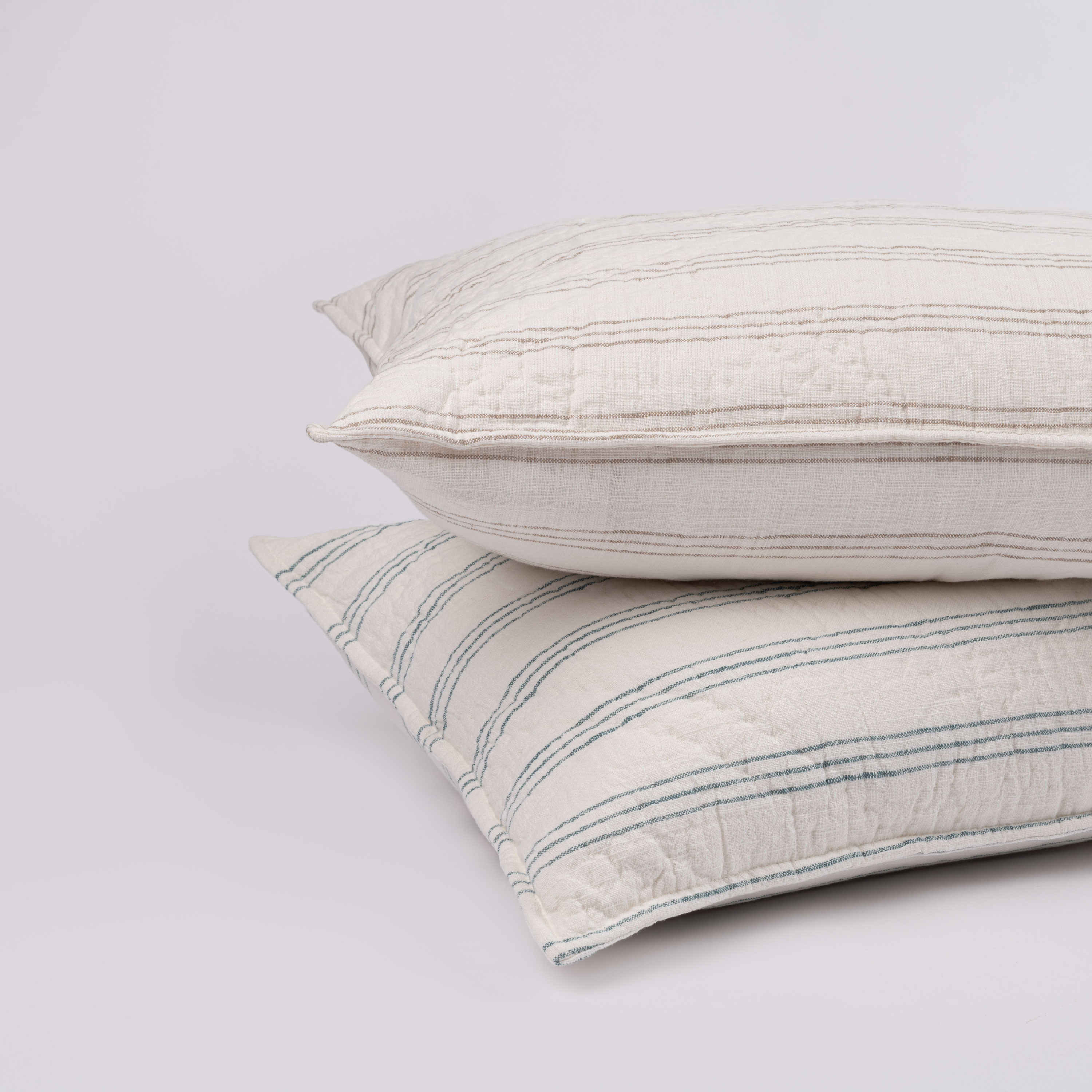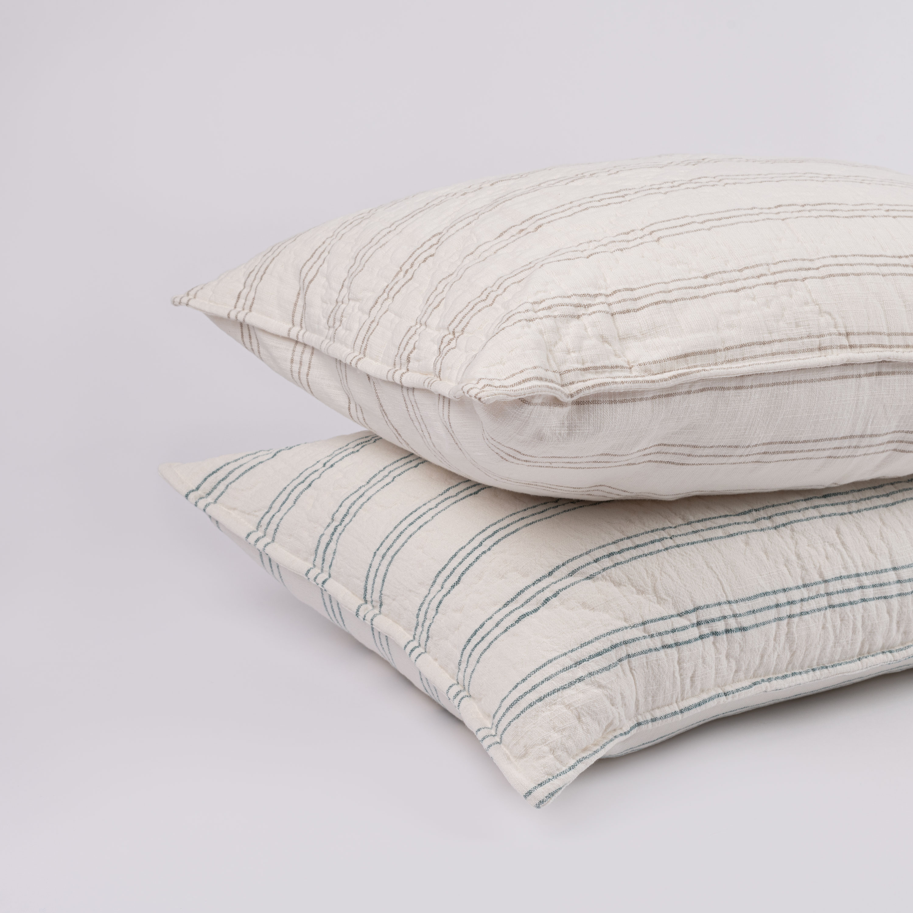 The Hammond quilt collection is crafted with a slubby cotton texture that emulates the look of linen resulting in a harmonious fusion of rustic charm and exceptional comfort. The quilt’s distinctive design features woven trios of horizontal stripes. The rhythmic play of stripes enhances the quilt’s visual appeal while maintaining a classic and versatile style. The beauty of this cotton quilt lies not only in its textural richness but also in its ability to effortlessly blend into various decor schemes.