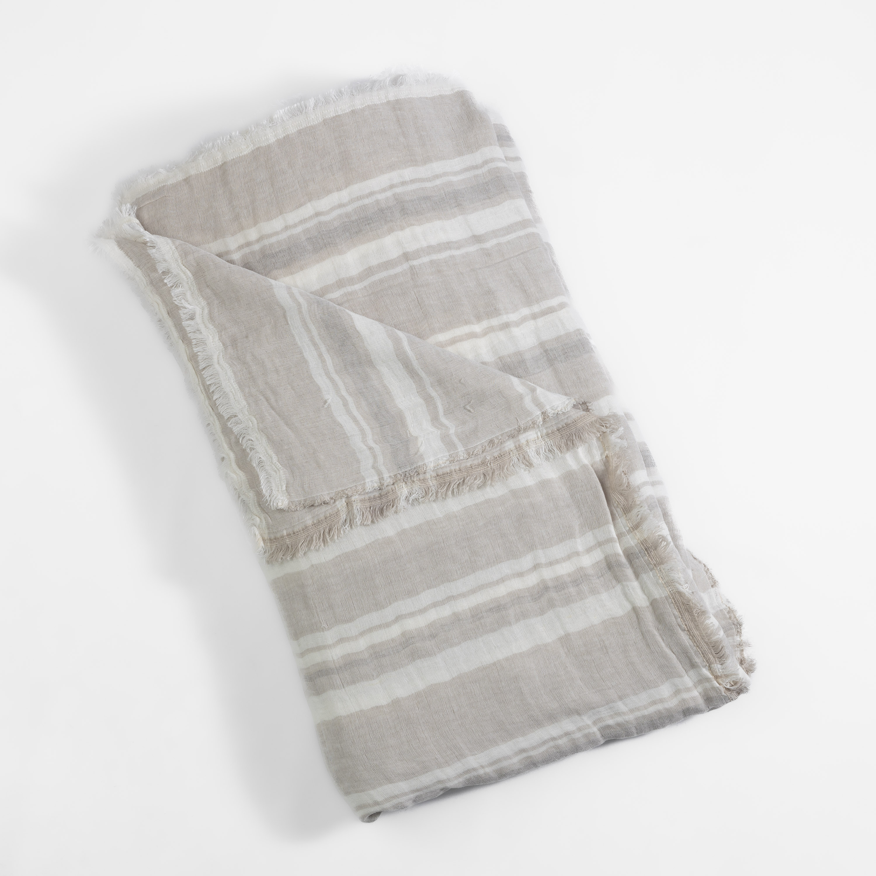 Lightweight and ideal for transitional months, it can serve as a thin sleeping layer or be draped over the foot of the bed. Finished with a raw edge, this one size fits most coverlet is perfectly versatile for use as an all over bedspread or synched up and tossed across the foot for a more casual sensibility.