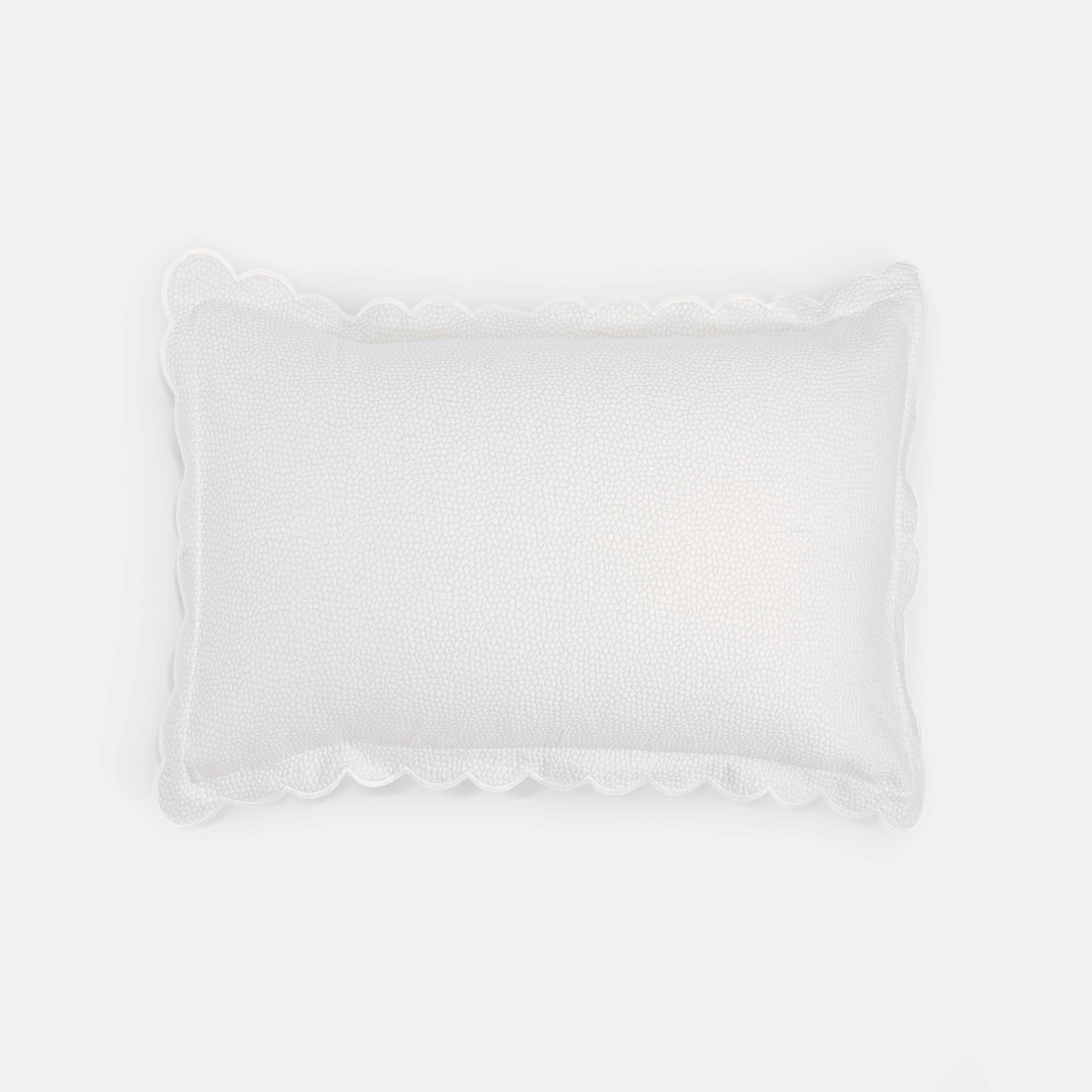 Hugo is a classic matelassé constructed of mercerized cotton for a sleek appearance and hand feel. The all-over stippling design provides subtle interest, and the coverlet is finished with a scalloped edge rounded front corners.