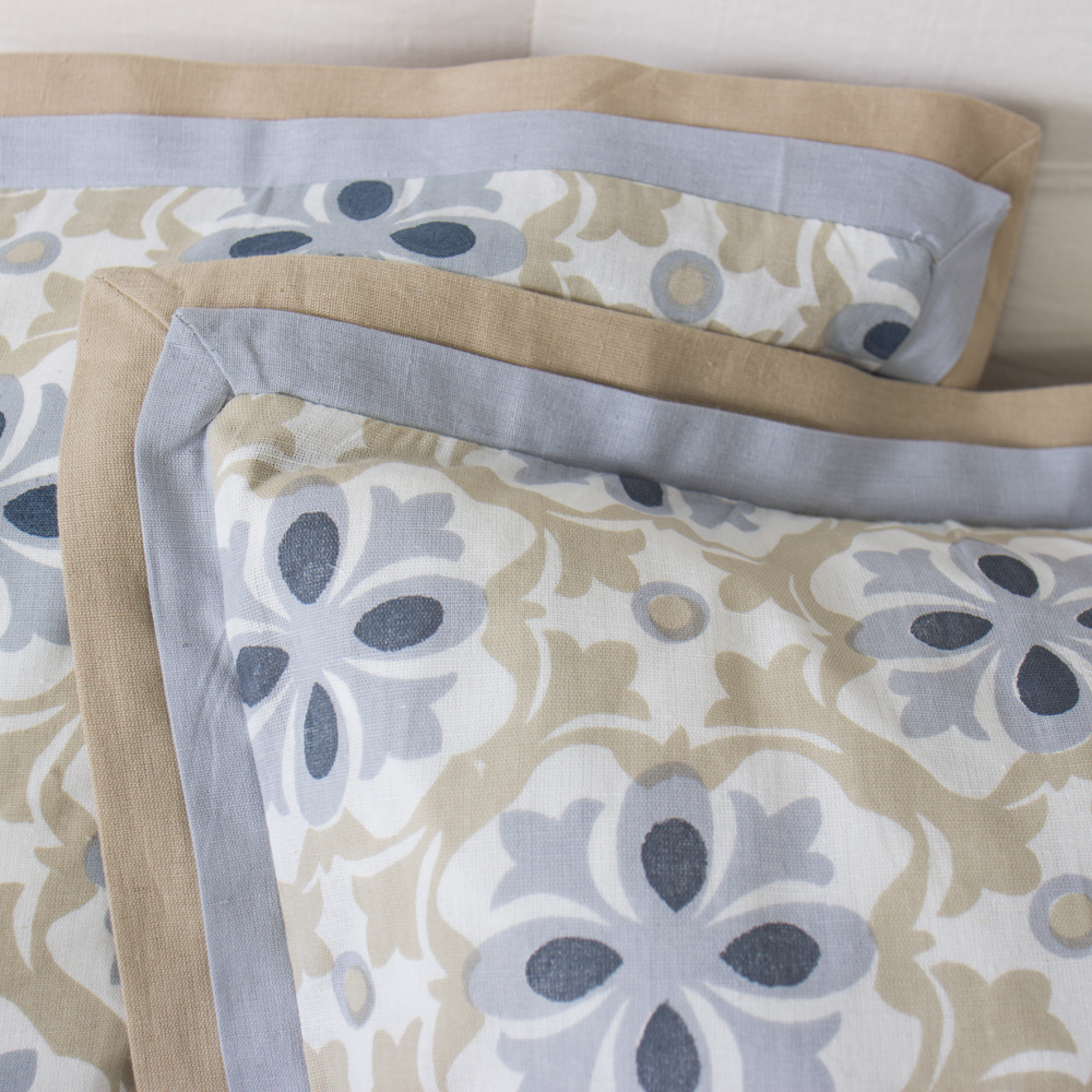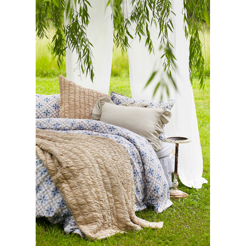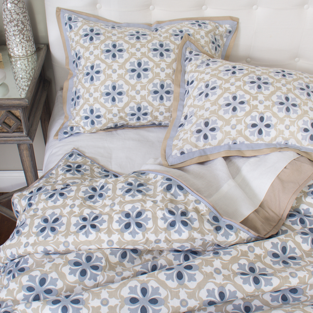 Softly patterned with a refined medallion motif, this 100% cotton duvet cover brings a sense of relaxed elegance to the bedroom. Inspired by classic tilework, its intricate design is rendered in soothing shades of blue and sand, creating a calming, layered palette that complements both coastal and transitional interiors.