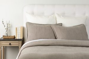 Soft spoken herringbone pattern in Natural, Taupe and Pewter make the stone washed Iven Linen Coverlet a necessity for comfort. To exhibit the beauty of linens, pair this super soft piece with any of other collections.