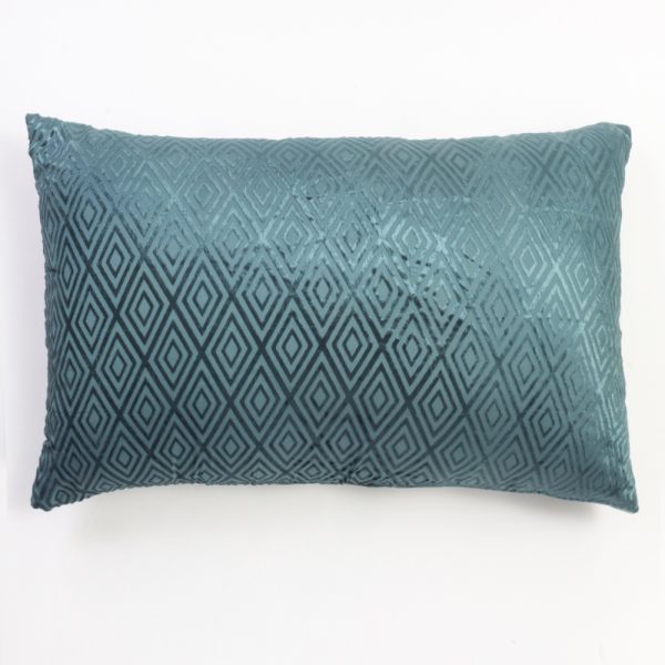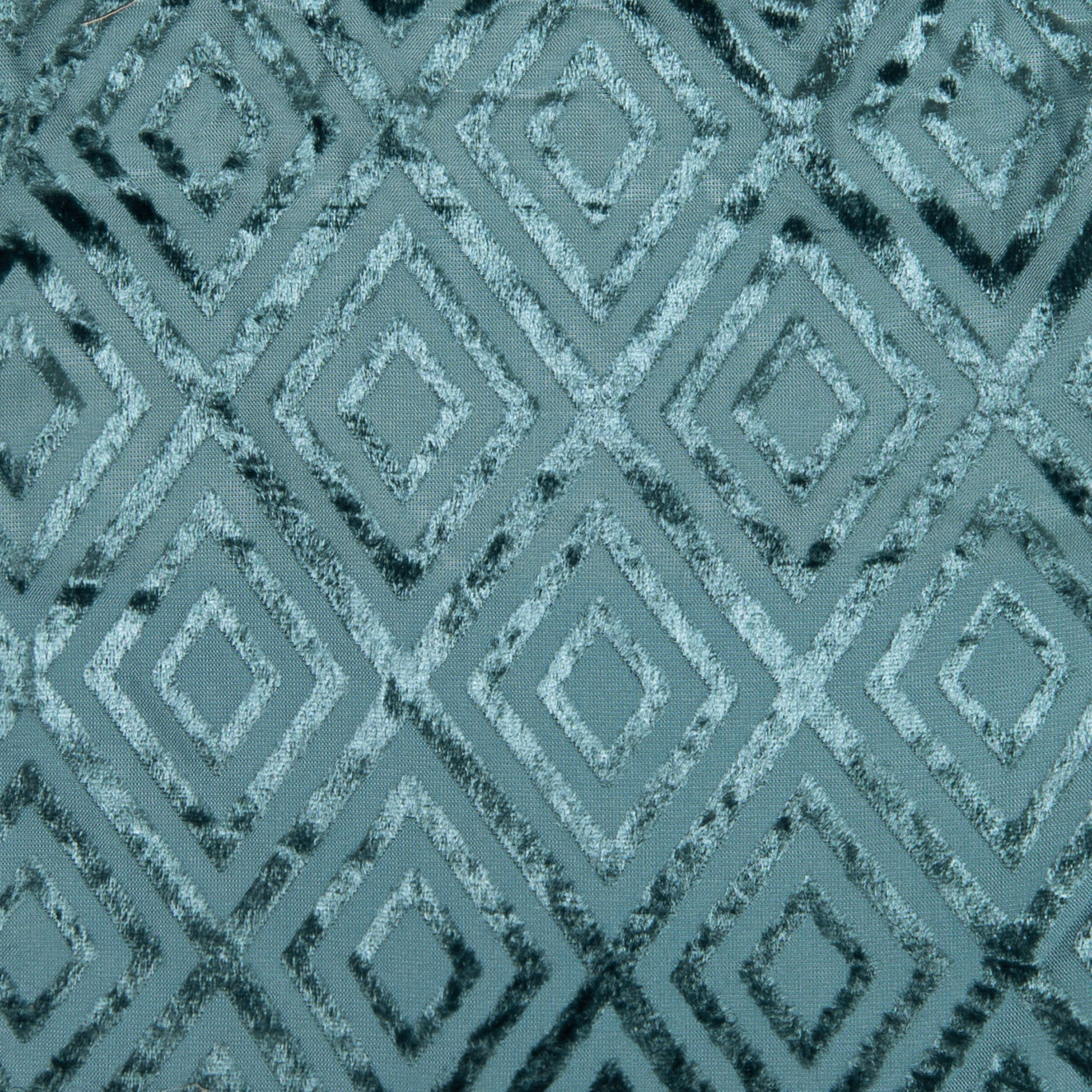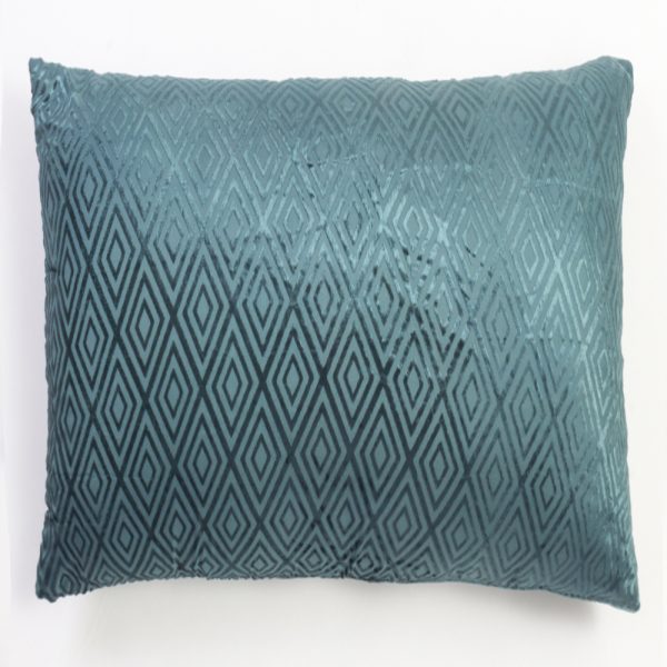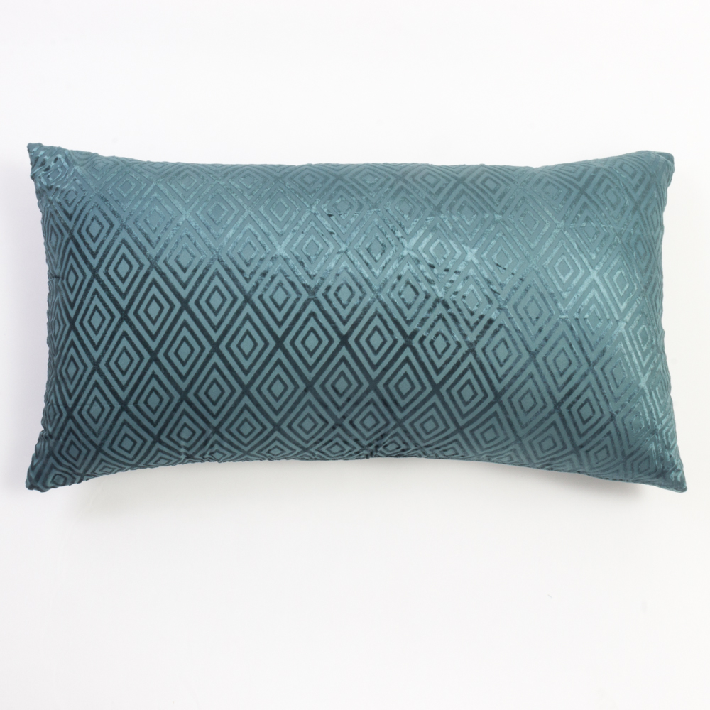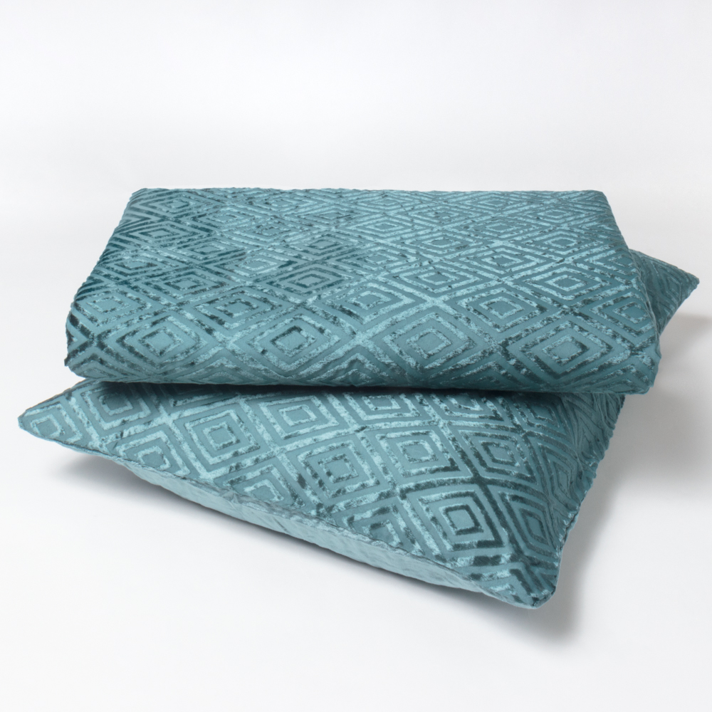 Jacqueline is a modern take on a traditional cut velvet technique. Constructed of a viscose blend and made to emulate a silk velvet, the concentric diamond pattern flashes to reveal the texture of the cloth as light shifts within the room. Backed with solid matching Viscose/Cotton back and finished with hidden button closure.