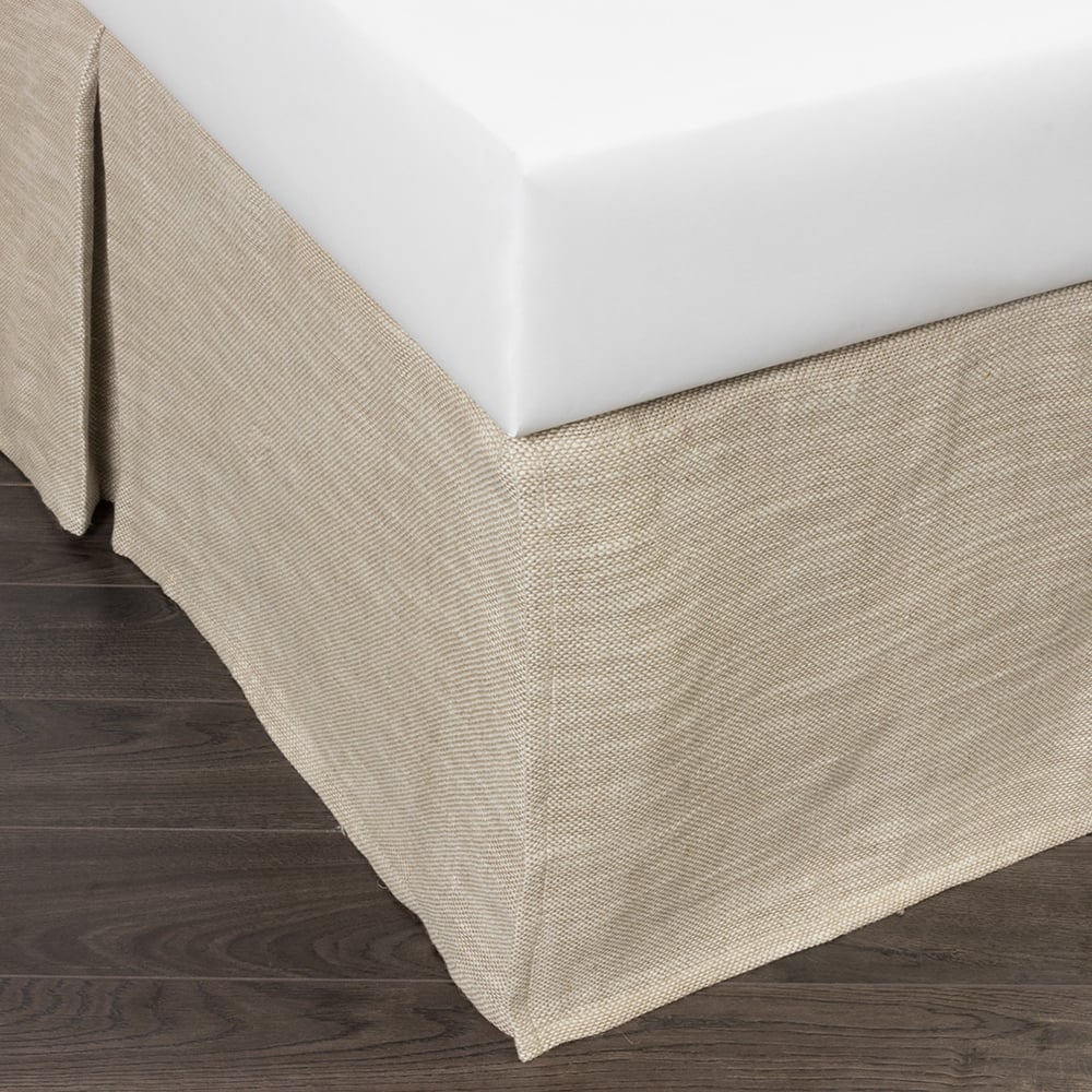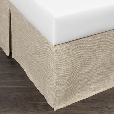 The Jerome bed skirt is tailored with pleats. The amazing texture on this linen/cotton bed skirt adds a great look to any bed. Bed Skirt comes as 3 Panels, in drop length + 3 inch deck, and may require pins ( Pins are not included)