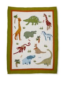 Bring the jungle to your kids room with this fun animal appliqued quilt. All cotton prewashed and machine washable quilt.