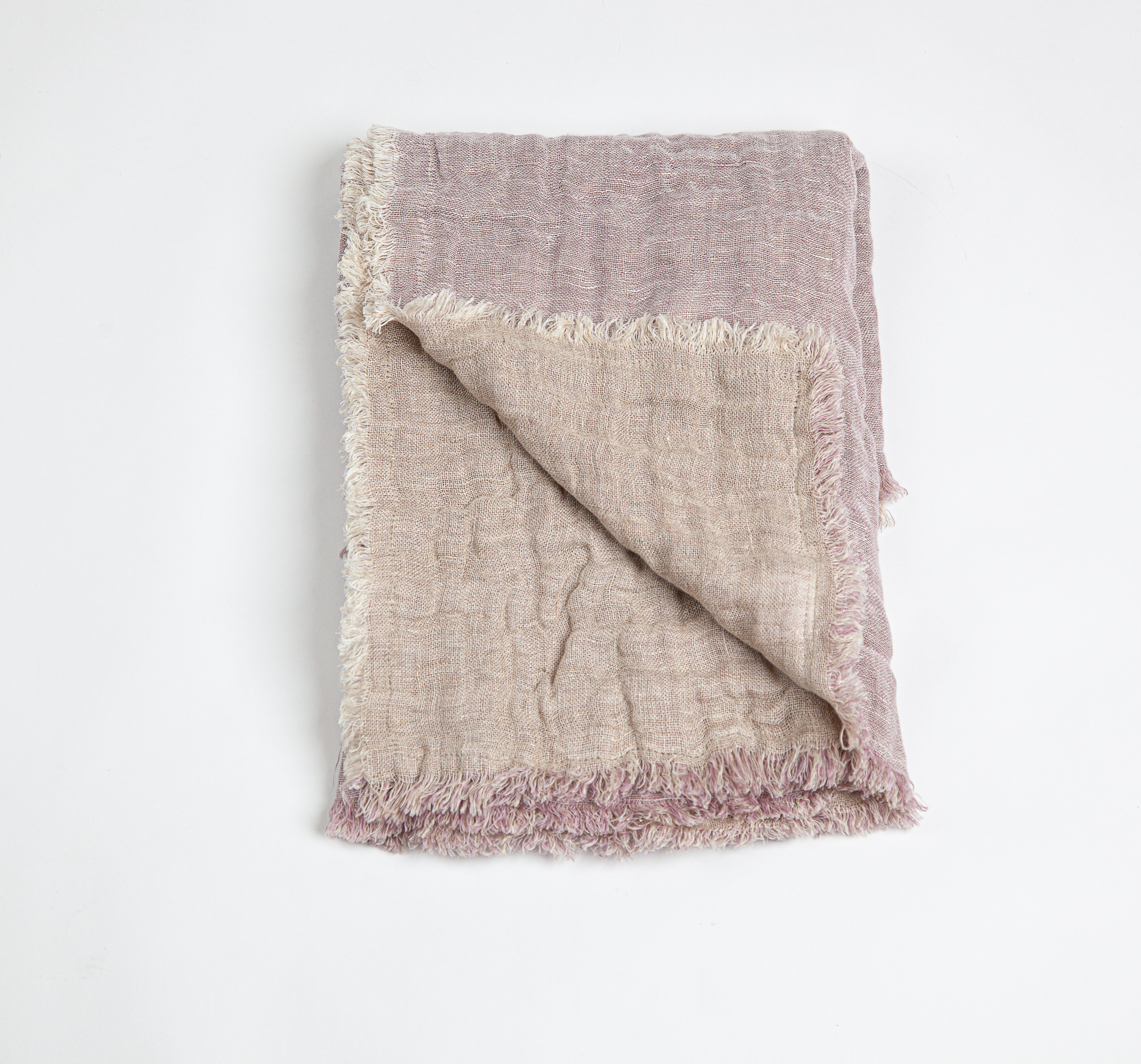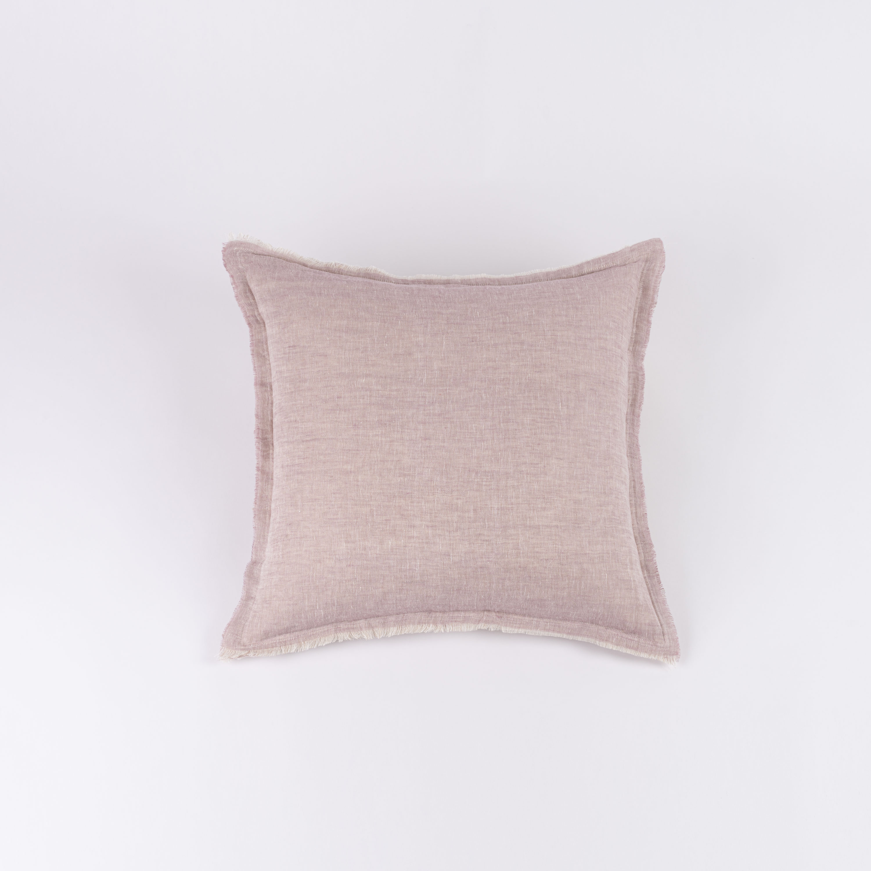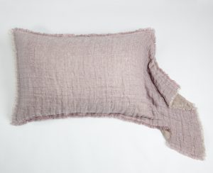 The shams are designed as a pillowcase style with an exaggerated drape. All colors reverse to natural linen and are finished with a hand frayed eyelash edge.