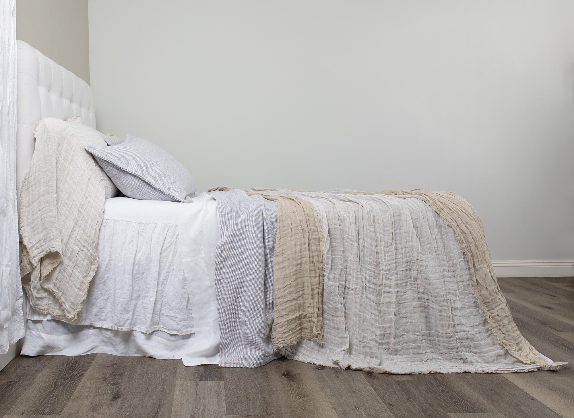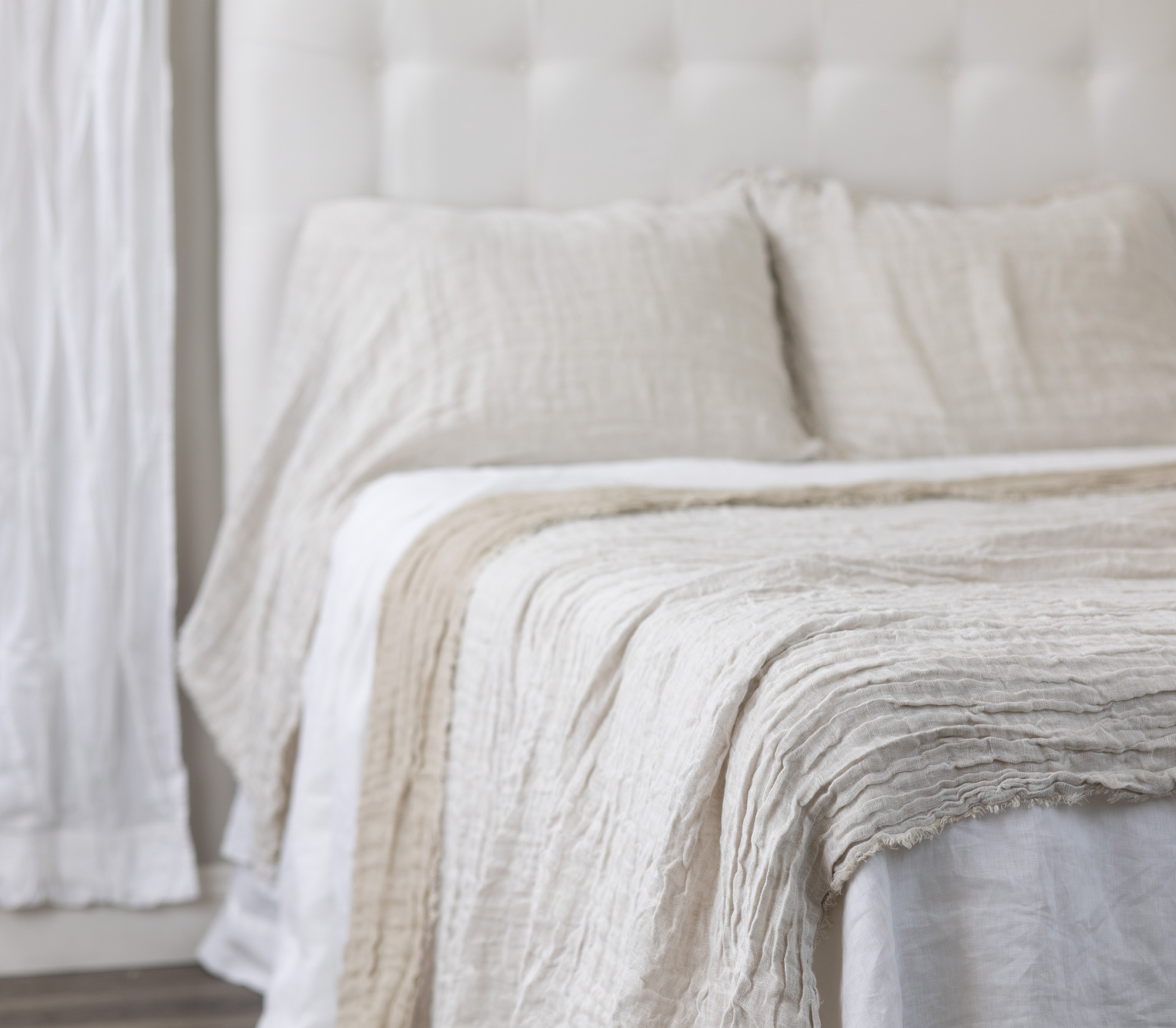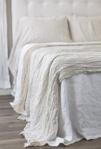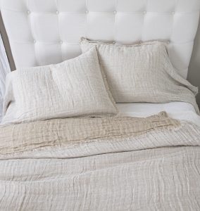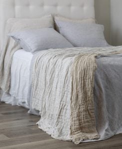 Inspired by the more relaxed European lifestyle, Kent brings home the casual elegance the continent is known for. Oversize linen gauze double cloth, that is designed with a European causal sensibility so that it completely covers the bed, nearly skirting the floor (depending on mattress height)and extra long shams (one sided open like a pillowcase) is a textbook European style- Classy yet Casual. Taking note new colors of the year, we have taken a softer more subtle approach with this introduction in 11 colors. The eyelash edge bedspread reverses to natural linen on the back side, so that Kent offers the newness of Asphalt grounded with the always appropriate Natural Linen on the reverse.