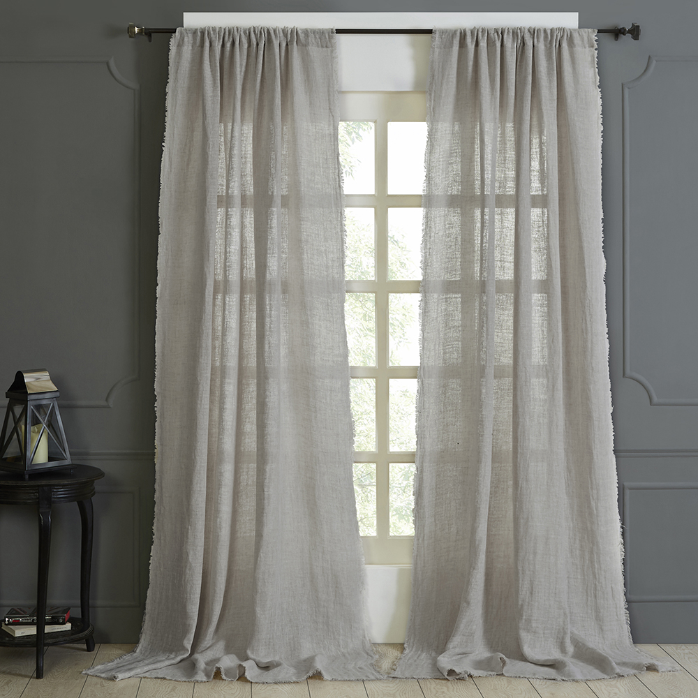 The Kent curtain is a linen gauze double cloth, that is designed with a European causal sensibility so that it adds an airiness to any setting. Use it alone to effectively soften the hard edges of the room, or use it as a sheer layer under a more structured panel to add natural softness. All colors reverse to natural linen and are finished with a hand frayed eyelash edge.