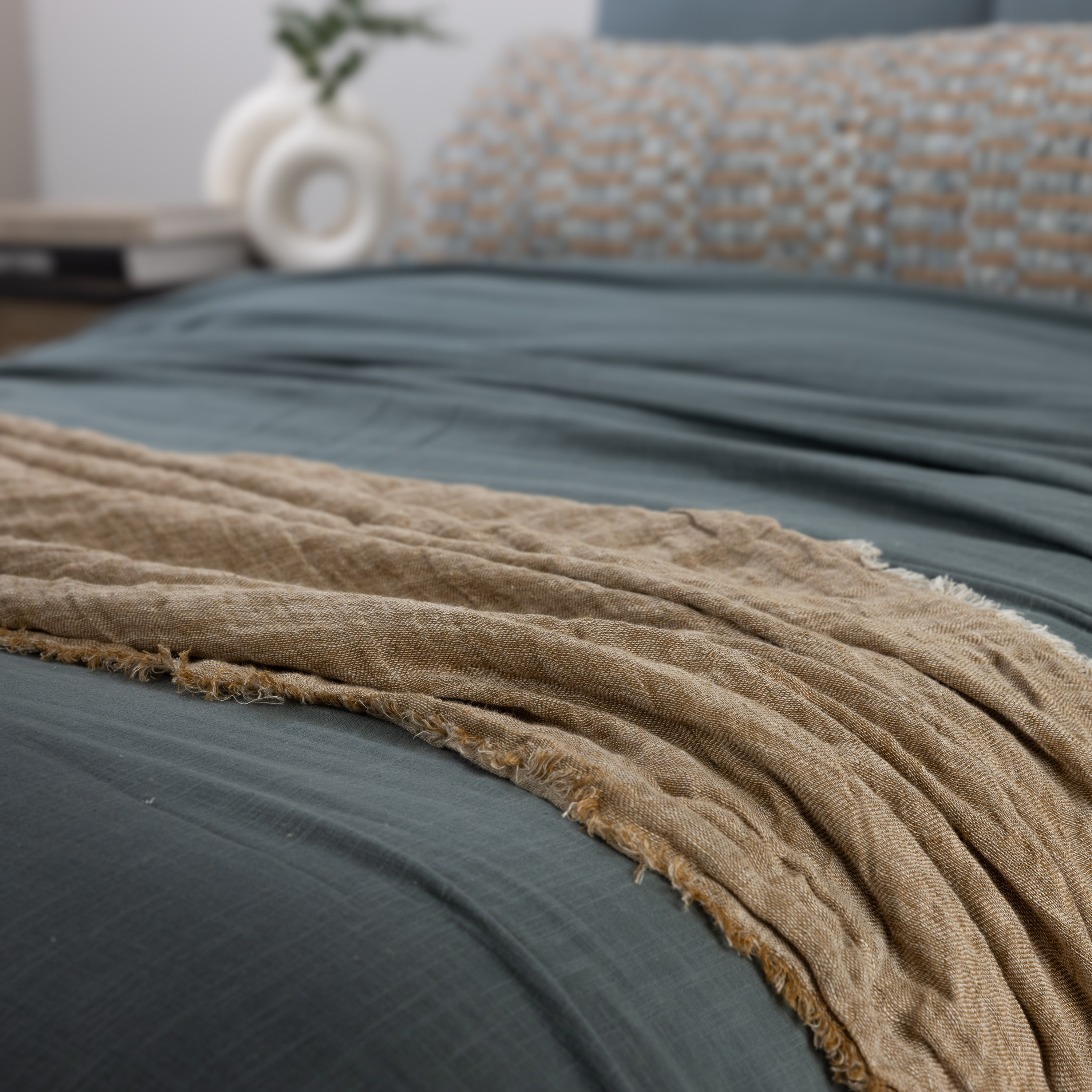 Inspired by the more relaxed European lifestyle, Kent Throw brings home the casual elegance the continent is known for. Oversize linen gauze double cloth, that is designed with a European causal sensibility Taking note new colors of the year, we have taken a softer more subtle approach with this introduction in 11 colors. The eyelash edge bedspread reverses to natural linen on the back side, so that Kent offers the newness of Asphalt grounded with the always appropriate Natural Linen on the reverse.