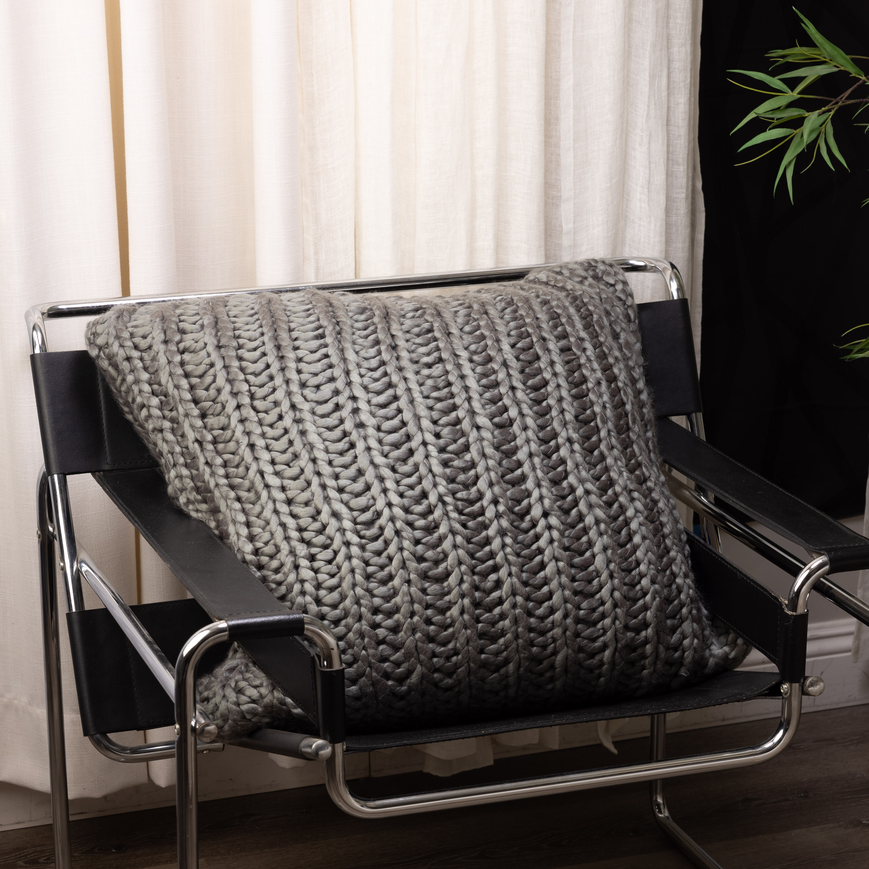 Oversized cable knit in the KILBY Knitted Throw in reiterates the likenss of cable with added softness of a favorite hand made sweater.