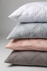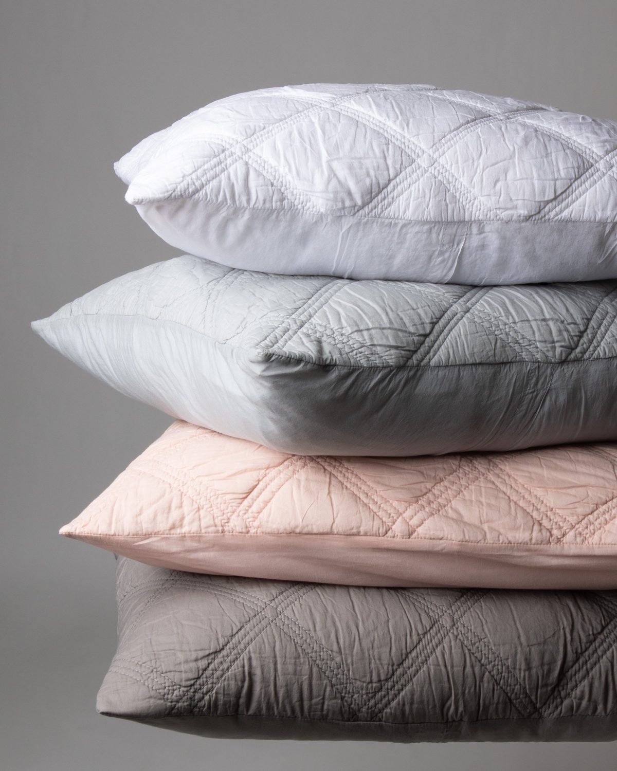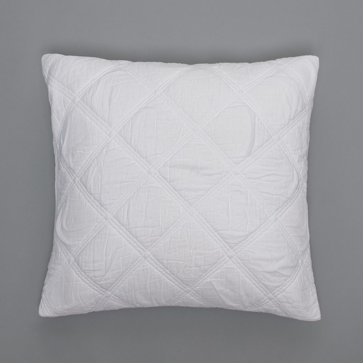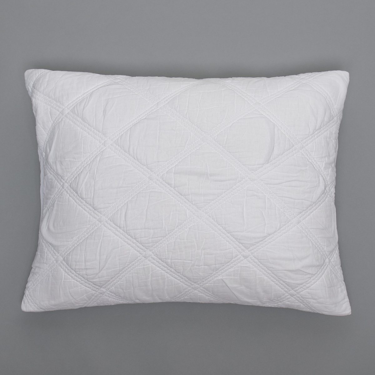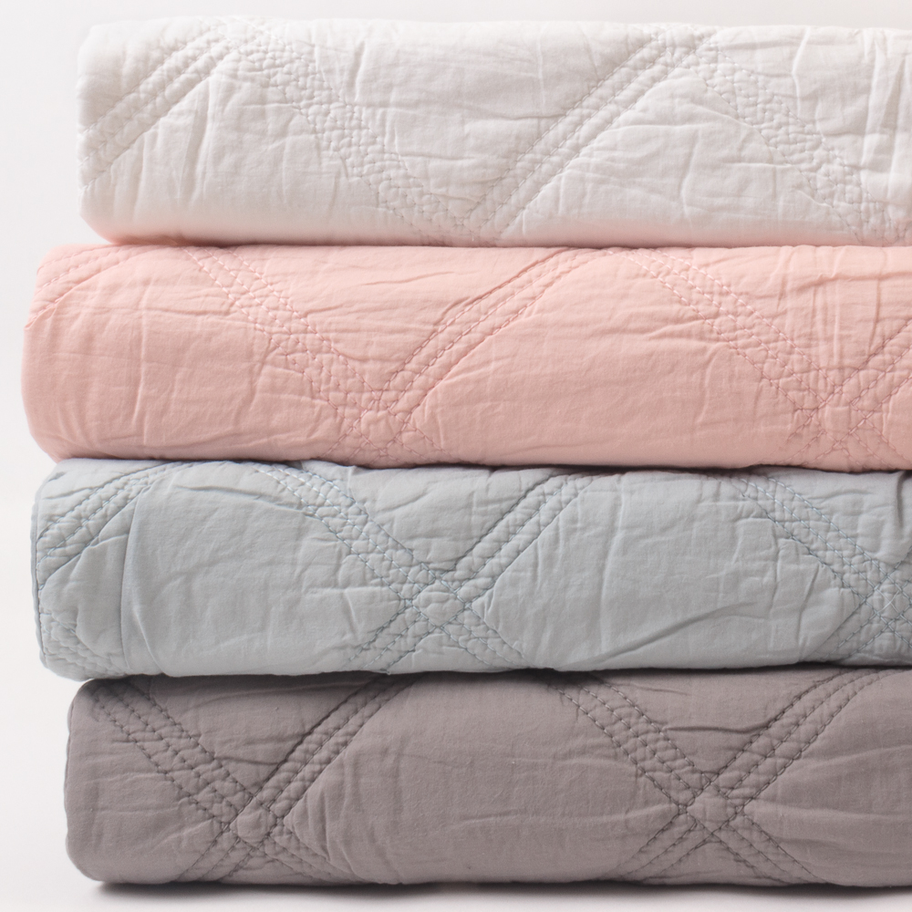 Fine cotton voile is triple embroidery quilted in an exaggerated diamond pattern for a subtle graphic effect with a delightfully soft hand.