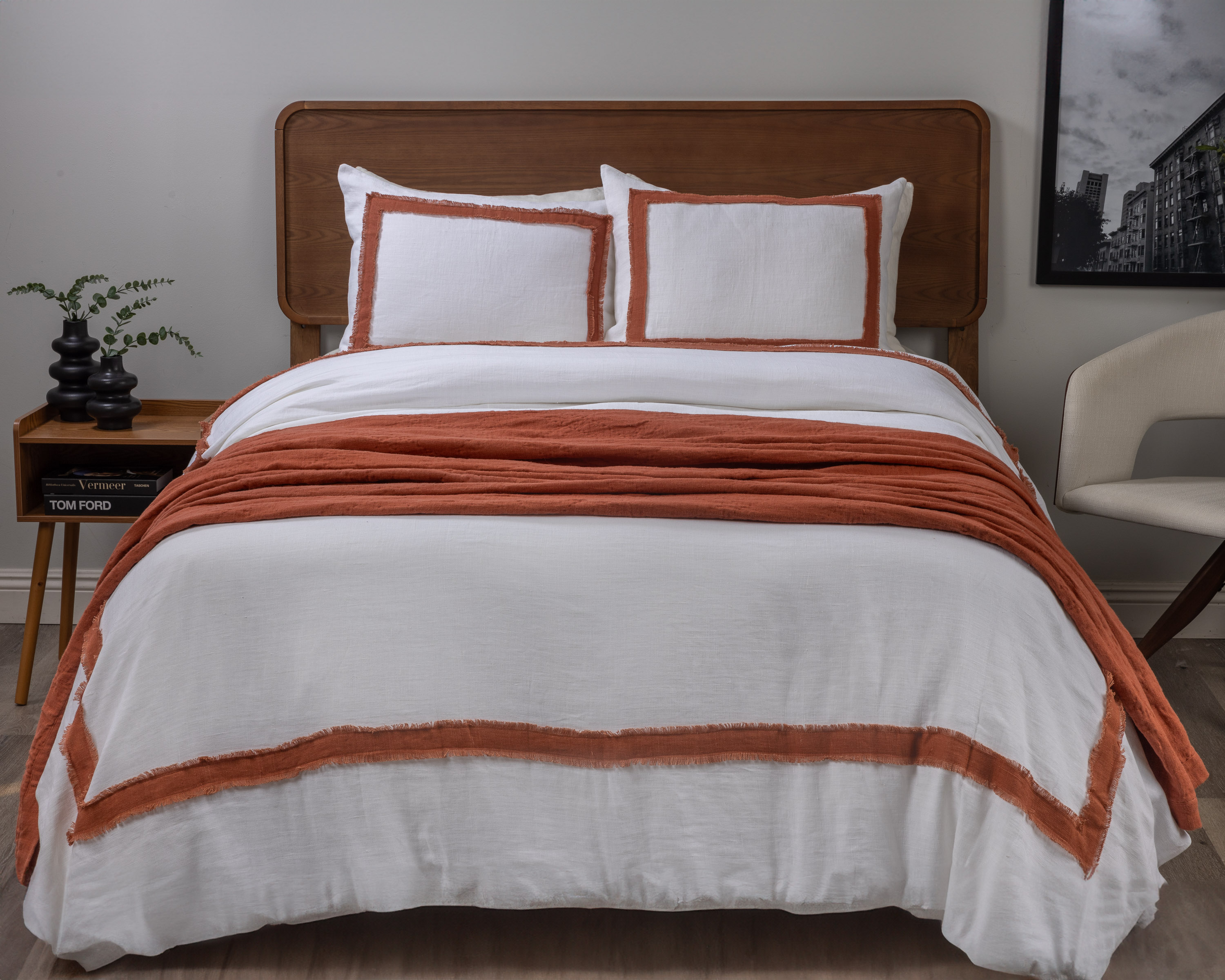 Kyler Linen Quilt, Burnt Sienna