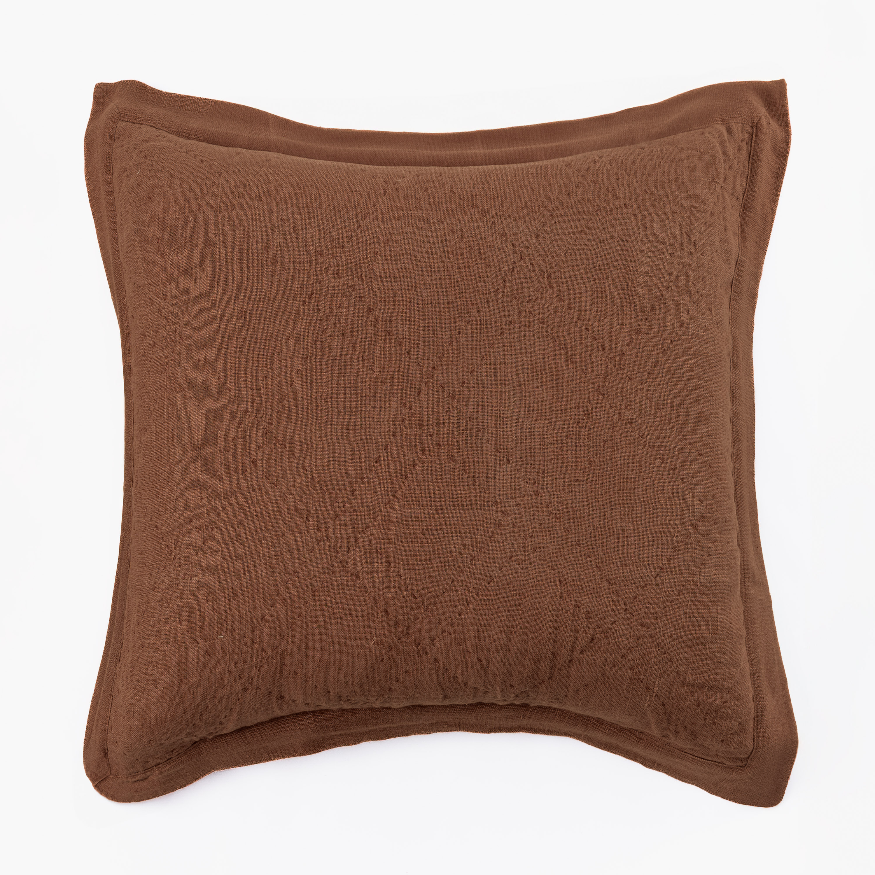 A slubby, washed linen cloth gives this quilt raw elegance that can transcend a multitude of style categories. Hand quilted in a classic double diamond pattern, with light-weight cotton batting afford superior drapability. A two-inch mitered flange binds the quilt and shams. The Kyler quilt is available in: