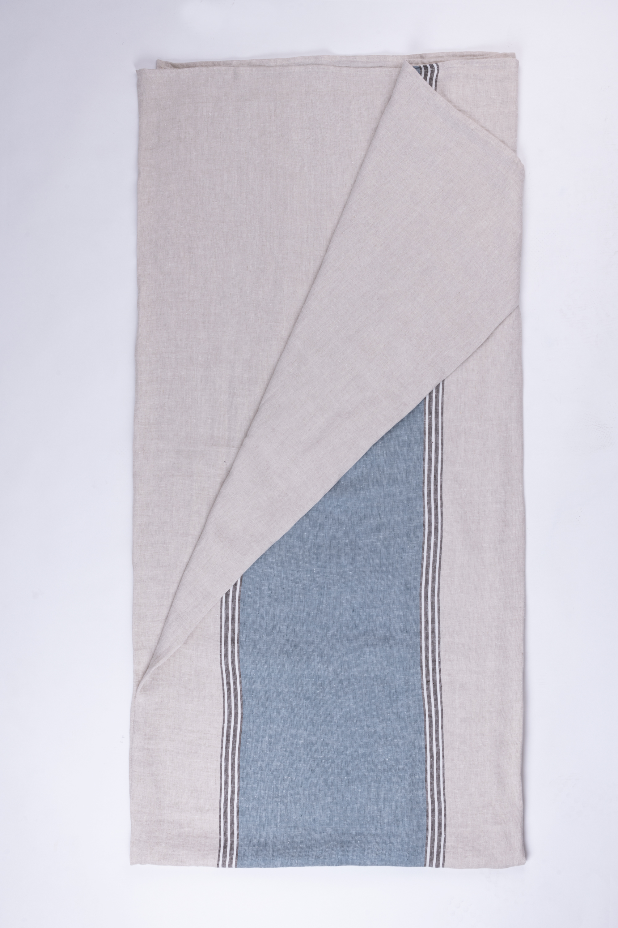 The Larke super throw boasts a timeless stripe alternating wide bands of natural linen and earthy hues off-set by a graphic stripe in ivory and asphalt. Made in France, with a classic herringbone weave, this piece is truly luxurious. Amply sized at 71” x 108” the Larke super throw can be used as a throw, a bed cover or even a tablecloth. The Larke super throw is available in