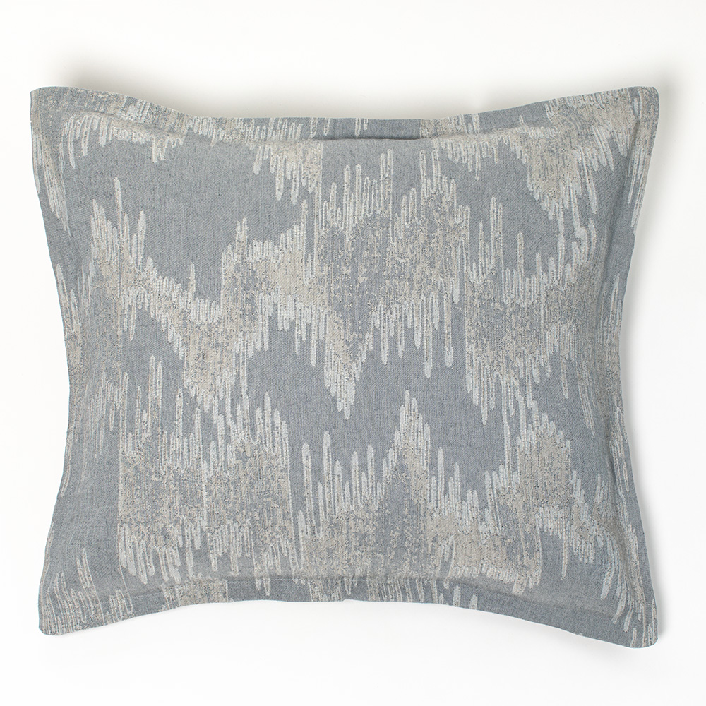 The Loren duvet cover is woven of fine cotton and linen fibers to create a dynamic irregular flame stitch pattern. This serene color palette can be easily mixed with other collections to create a casual coastal sensibility or a more elegant ensemble.