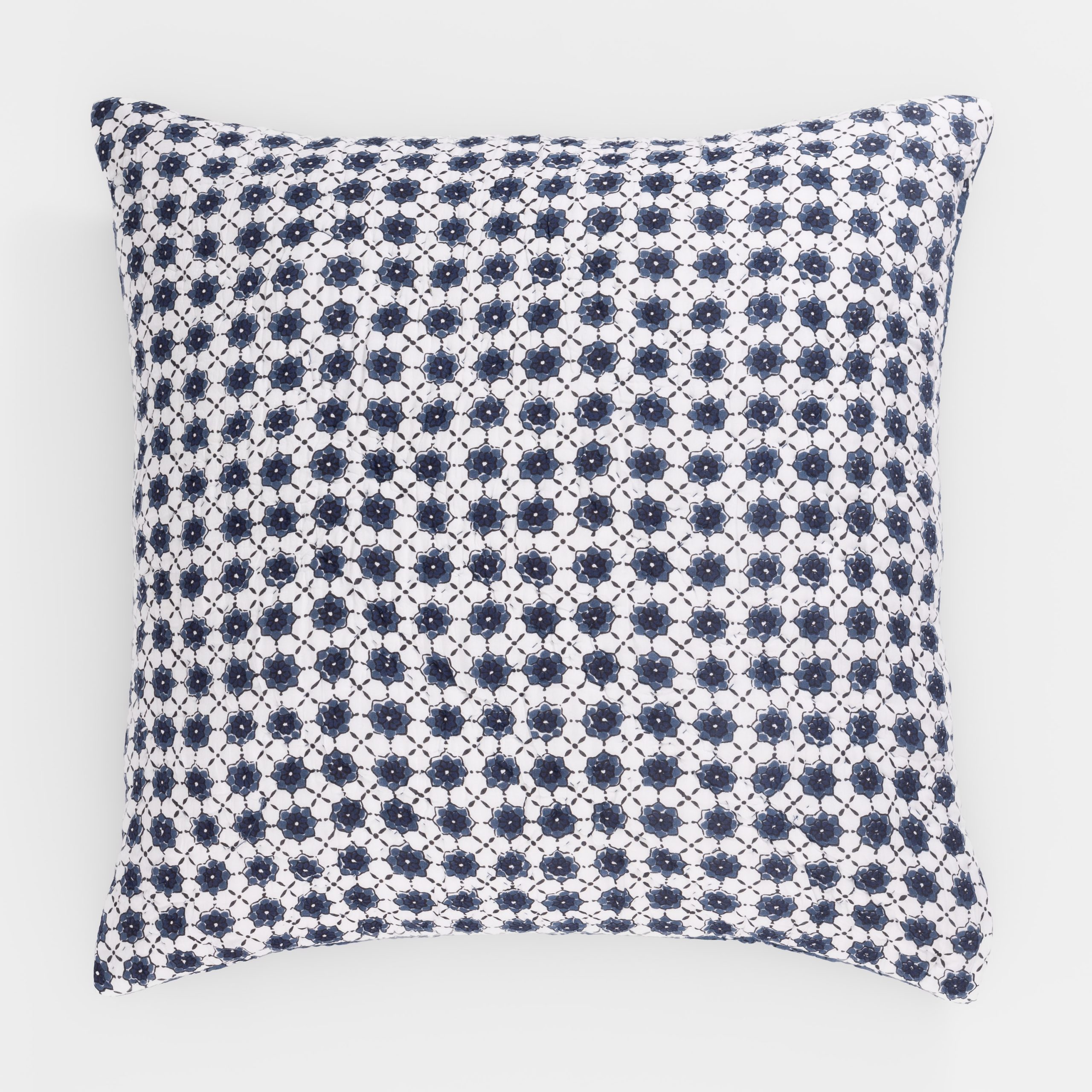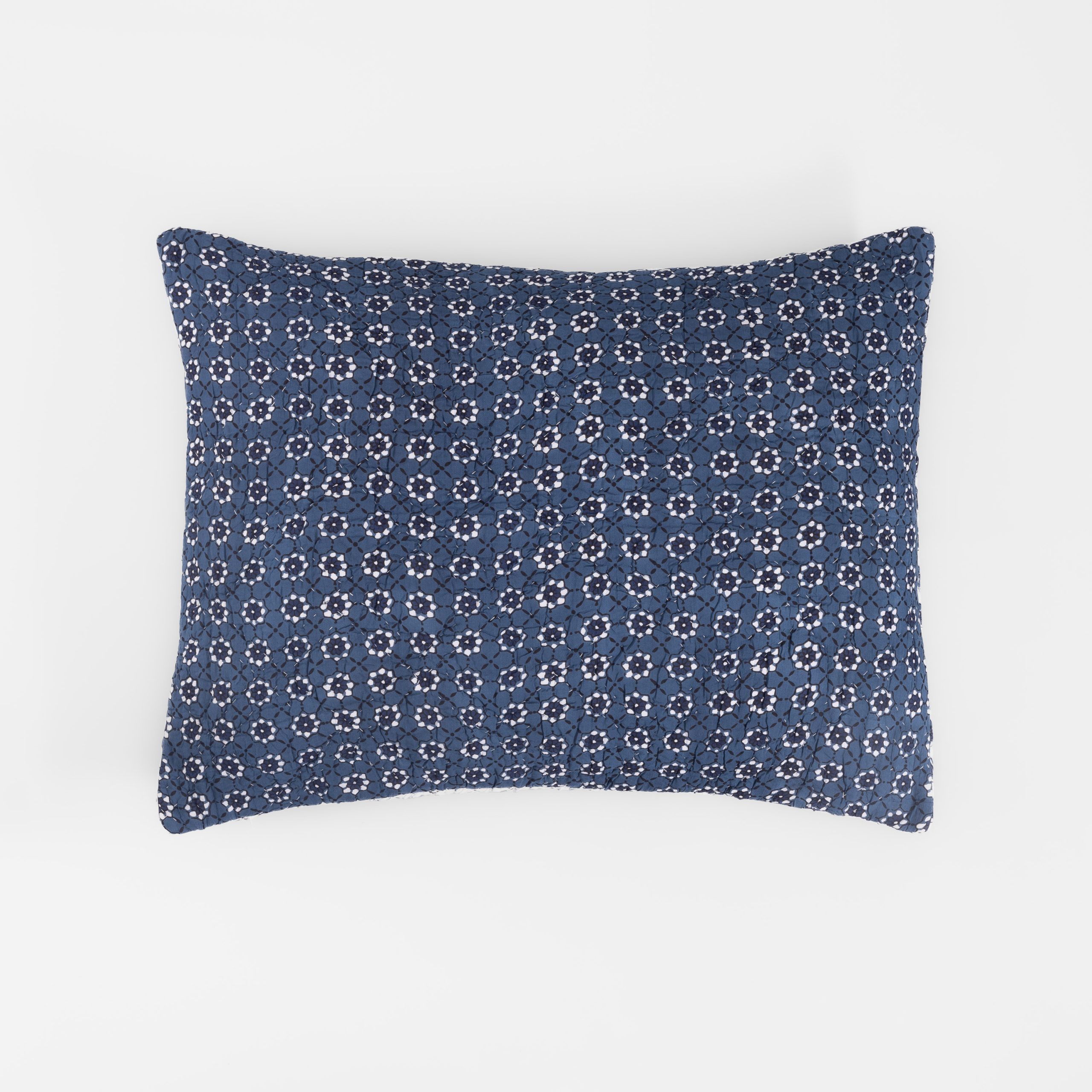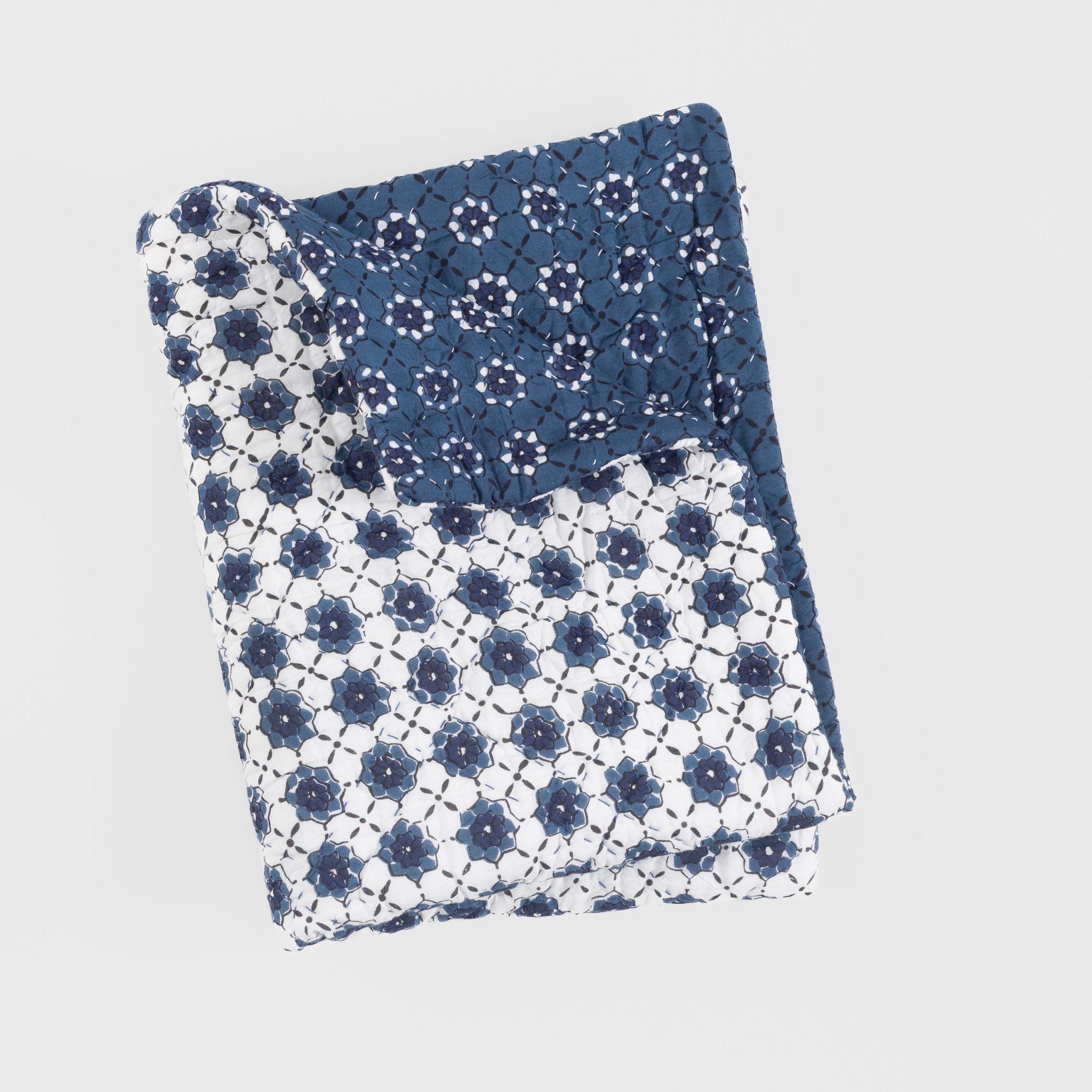 The Luna quilt is inspired by traditional block print designs from Rajasthan, India and printed on a luscious viscose ground. The refined indigo and white palette reverses for a dynamic two-in-one collection.