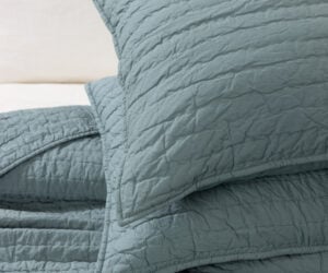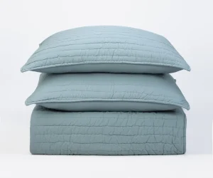 The Lyon Kale quilt pairs perfectly with the Rayden, a refined linen duvet cover collection and the wrought iron inspired embroidery of the Tucker sheet set. Adding the Trawick Charcoal Dutch Euro, Coverlet and Bed Skirt add a richness of texture and depth of color.