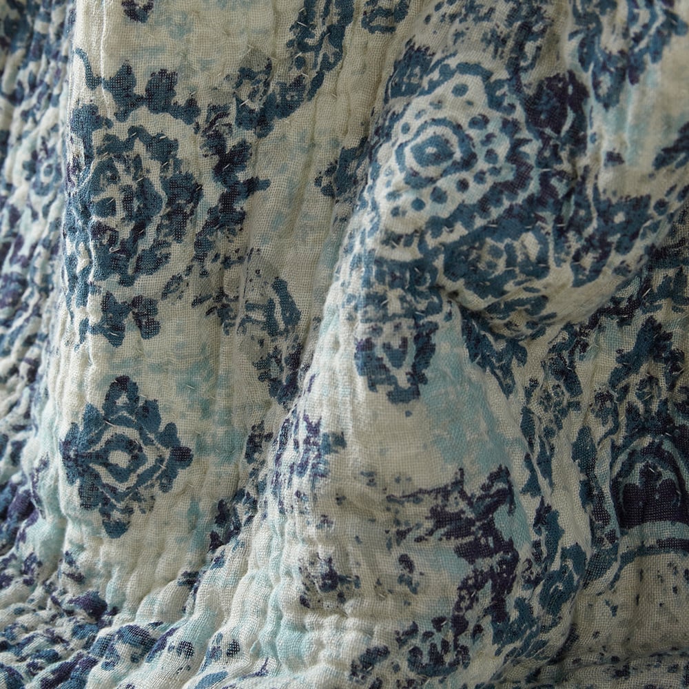 The Lyon quilt makes a dramatic statement in it’s spa like peacock coloration when paired with the Damara Ivory duvet cover and the Kent Bedspread and shams also in peacock. Pulling the Indigo from the print, the Tucker sheet set is a perfect match, and the Hannah throw and Dutch Euro add an interesting texture to the setting.