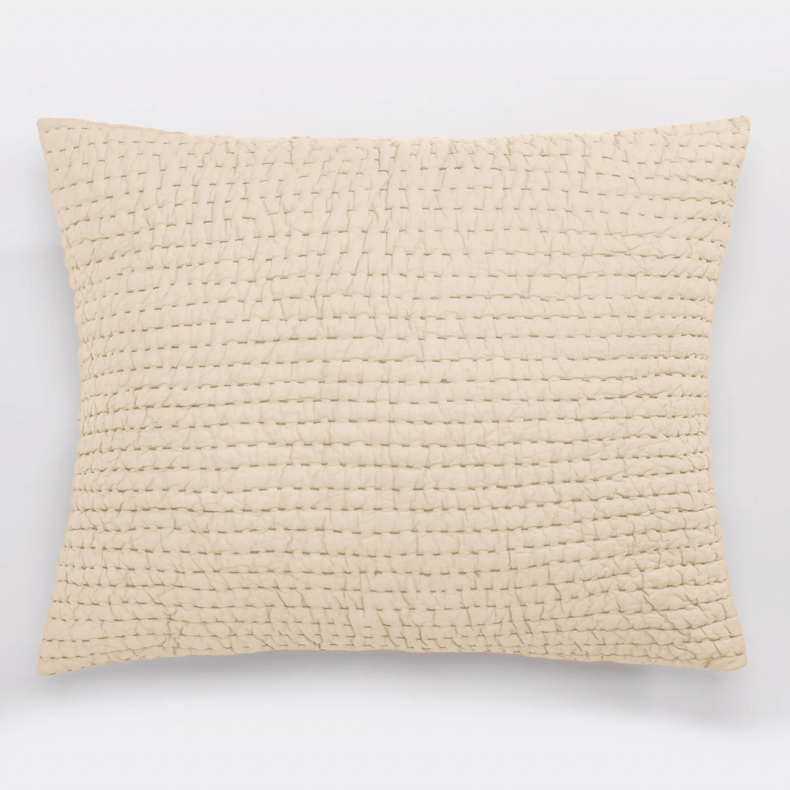 Indulge in the comforting embrace of Maegan Dutch Euro, where casual sophistication meets unparalleled softness. Crafted with meticulous care and attention to detail, this quilted Dutch Euro is made from fine cotton voile, ensuring a graceful drape and lightweight quality, making it perfect for year-round use. The sham’s unique charm lies in its hand-quilted design, featuring the timeless artistry of Kantha stitching. Each stitch is a testament to the skilled craftsmanship that goes into creating this masterpiece, giving it a distinct and artisanal quality. The Kantha style not only adds visual interest but also enhances the overall texture, creating a tactile experience that is both cozy and elegant
